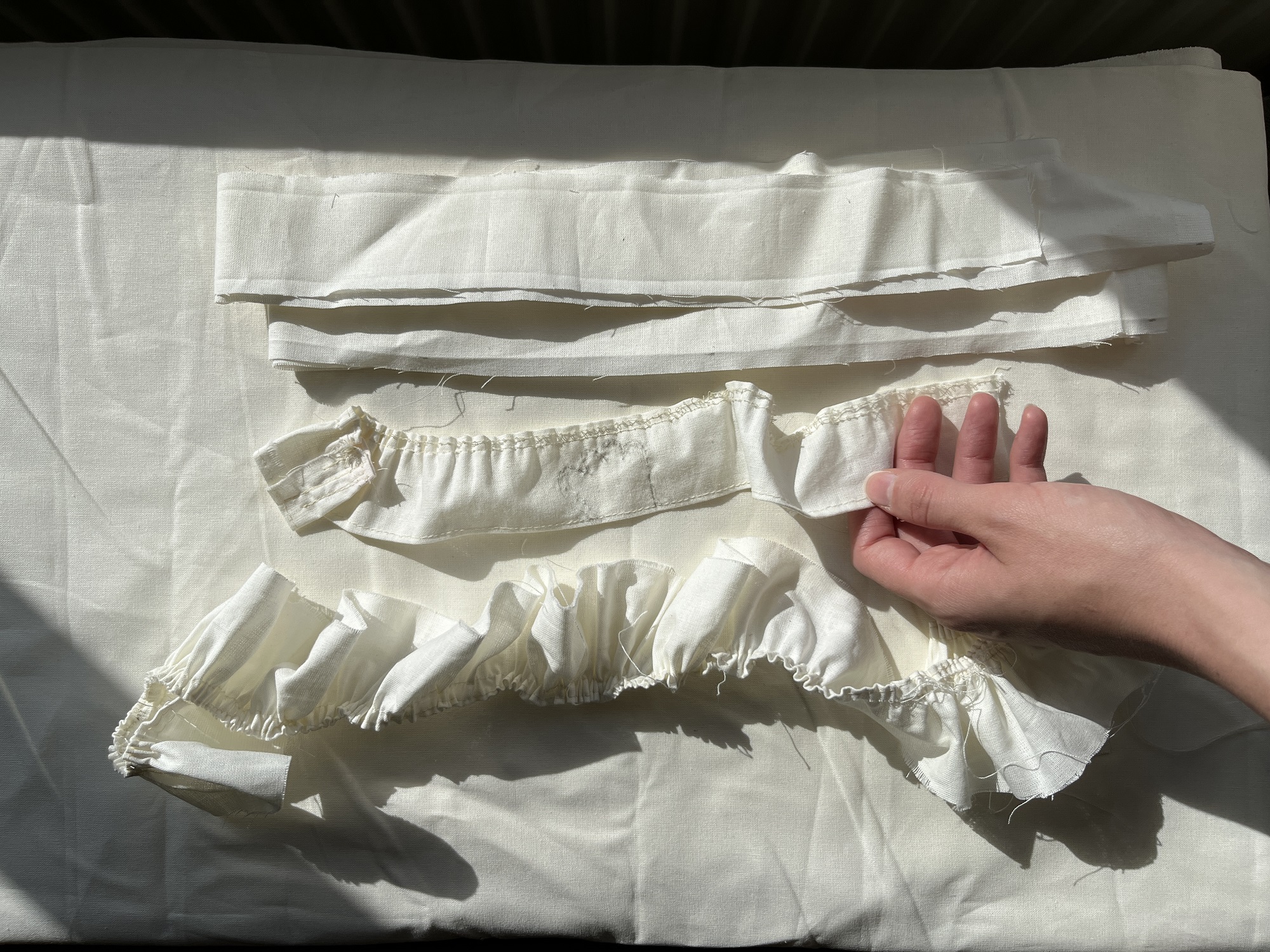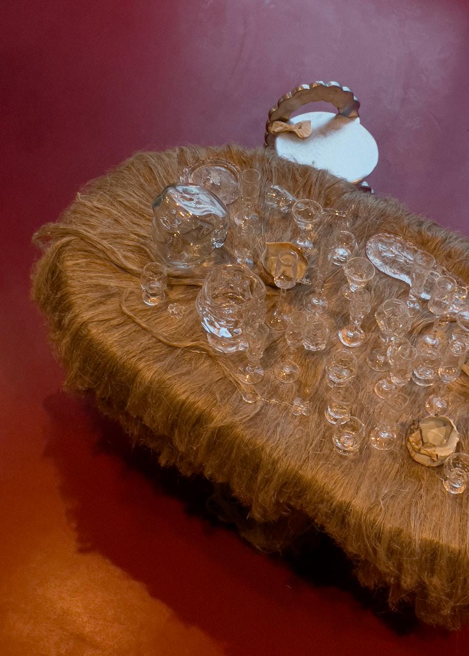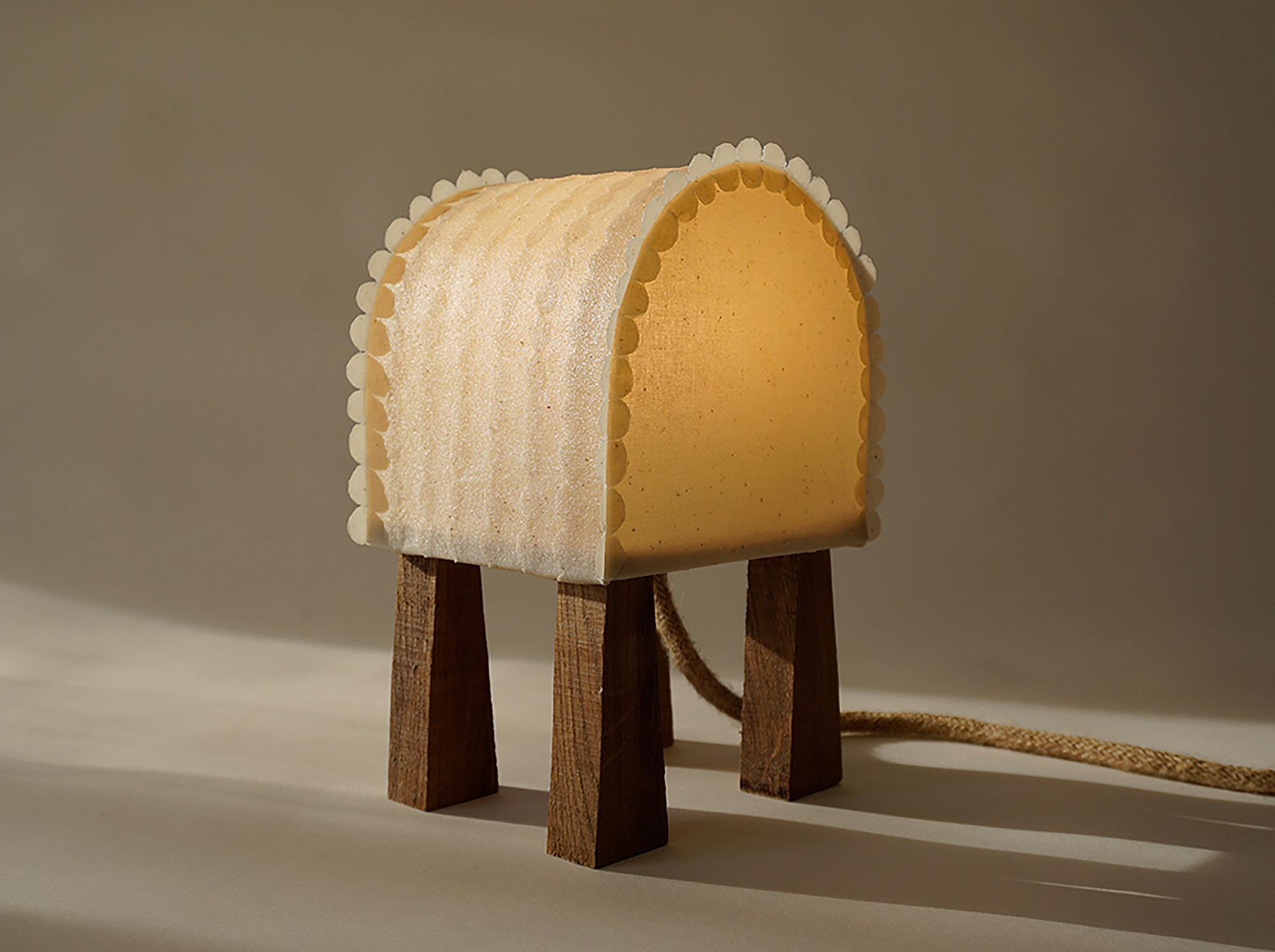 Motywy falbanek, kokard i haftowanych wzorów stanowią element konstrukcyjny. Haft odgrywa rolę rysunku technicznego, jest sposobem projektowania kształtu i funkcji. Bujany fotel, falbaniaste krzesło, lampa z tkaninowym kloszem łączą czułość i funkcjonalność.
