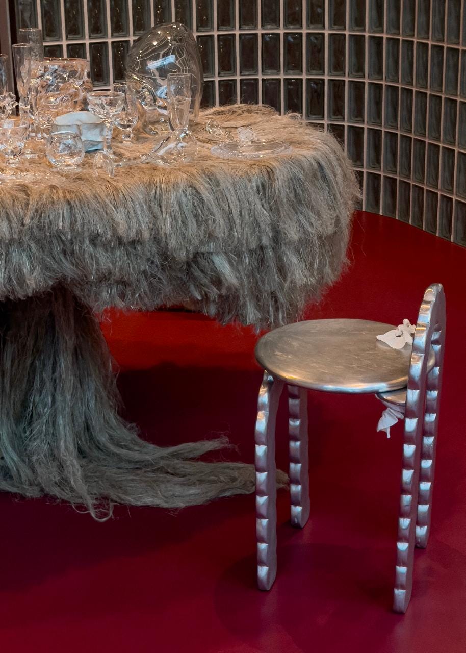 The Romance to kolekcja mebli, która wyrasta z jej rodzinnej historii i przywołuje wspomnienia o pradziadkach – on pracował z metalem i drewnem, tworząc przedmioty codziennego użytku, ona zajmowała się haftem i tkaniną dekoracyjną. Zderzenie tych dwóch światów, romans między rzemiosłem męskim i kobiecym jest punktem wyjścia dla jej poszukiwań.