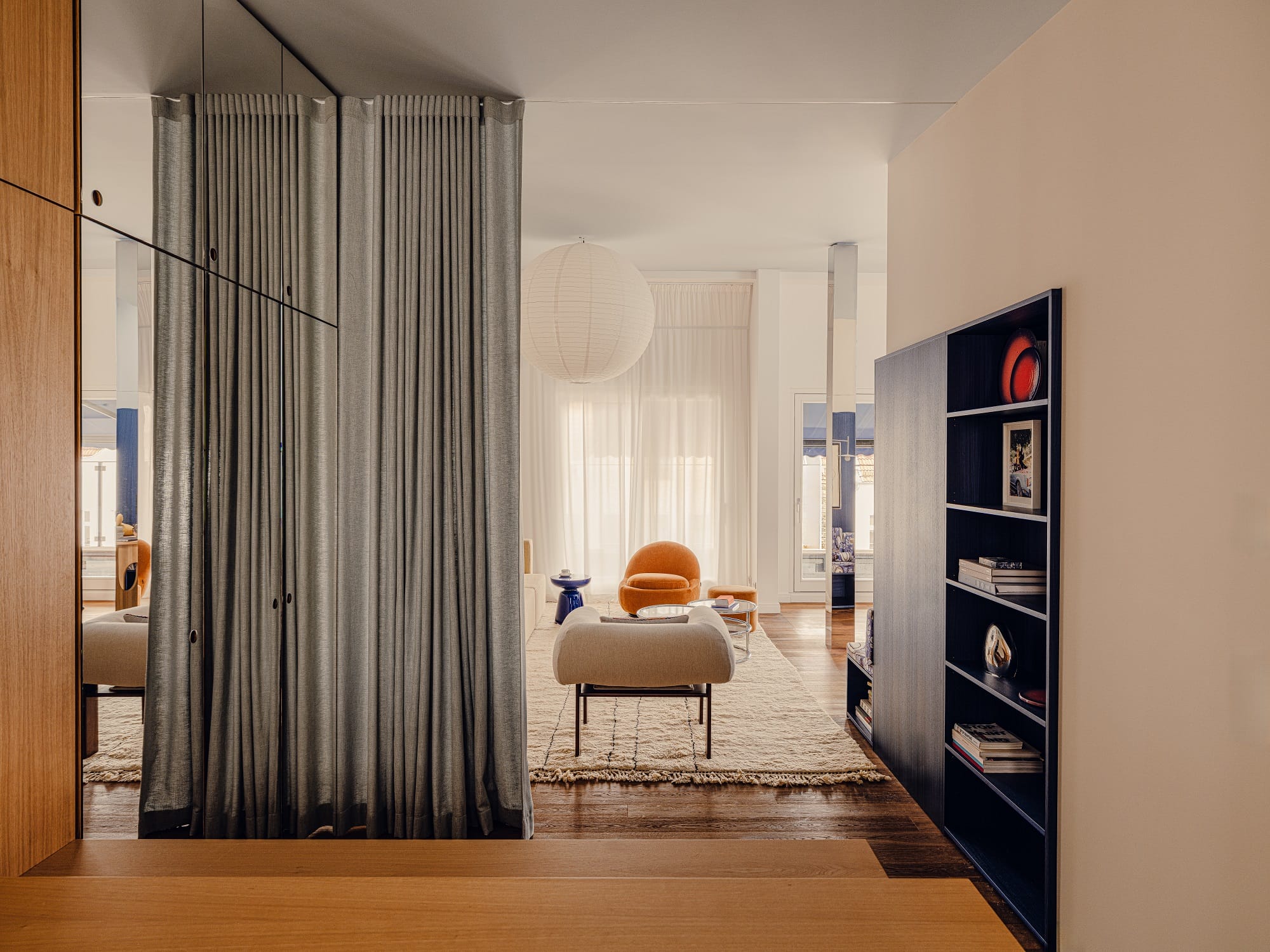 – Gdy klienci po raz pierwszy zobaczyli mieszkanie, urzekło ich, jak przy otwartych drzwiach wiatr hulał po przestrzeni – wspominają partnerzy Ester Bruzkus i Peter Cooper Greenberg. Dobry trop dla projektu wyznacza kierunek. Wnętrze powinno być otwarte, przestronne, dawać swobodę komunikacyjną. Tyle że mieszkanie było podzielone na maleńkie pokoje pełne ścianek, a jeden pokój w ogóle nie miał okien. Do tego dokładnie na środku przejścia zawadzał kominek, którego nikt nie chciał.