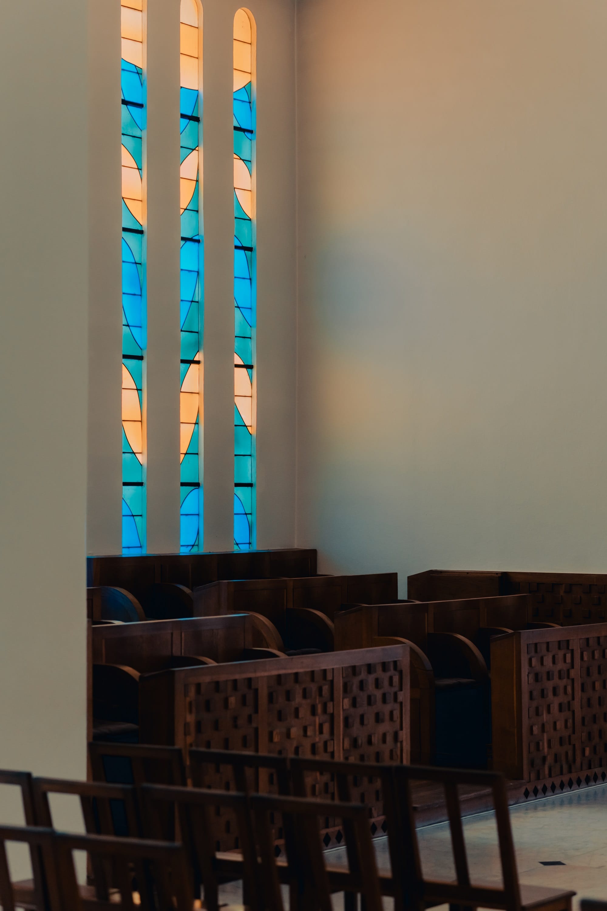 Ołtarz kaplicy, zbudowanej na planie litery L, jest umieszczony u zbiegu jej prostopadłych naw. Wykonano go z brązowego kamienia, mającego nawiązywać do koloru chleba – eucharystycznego symbolu dziękczynienia.