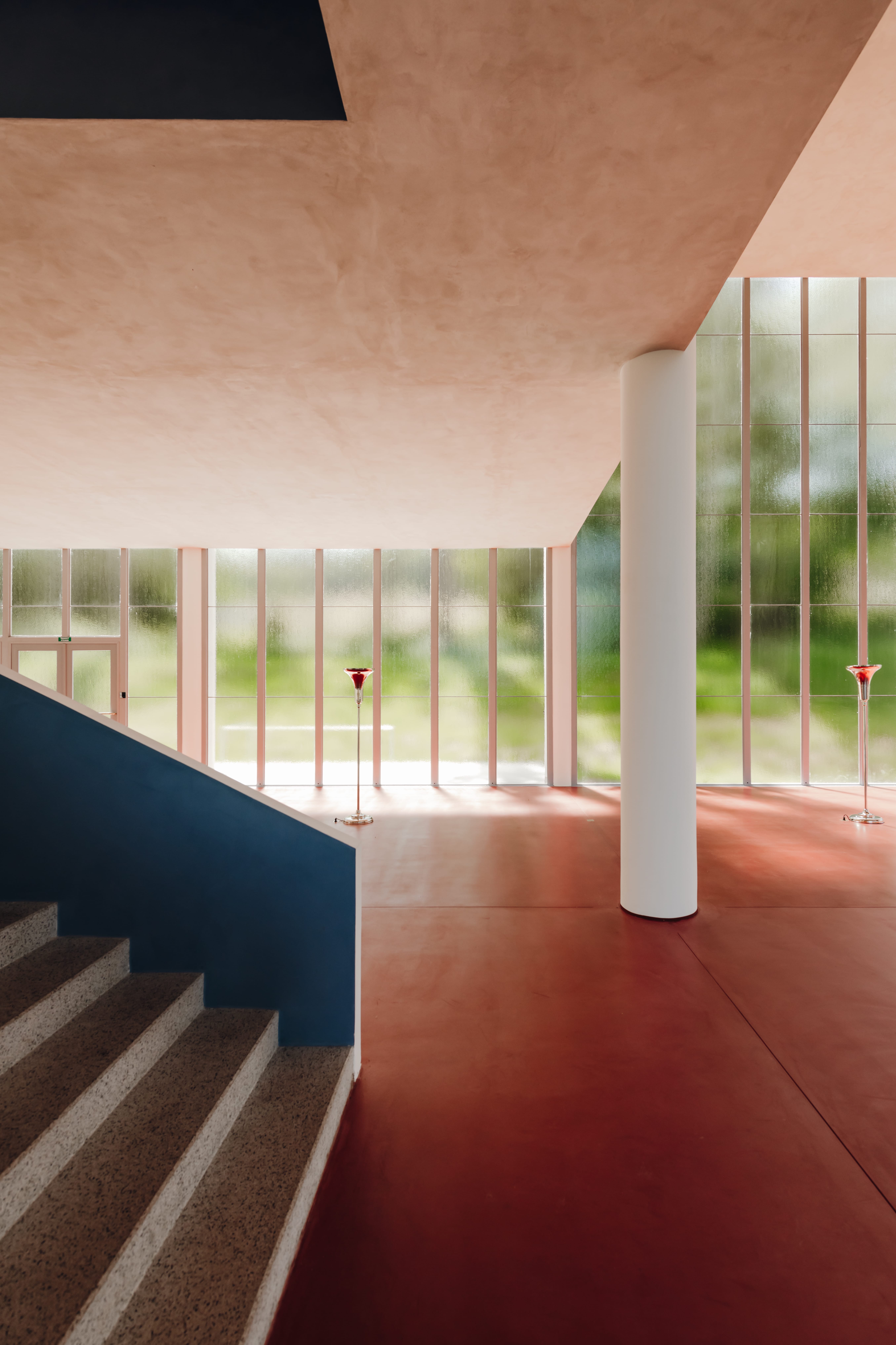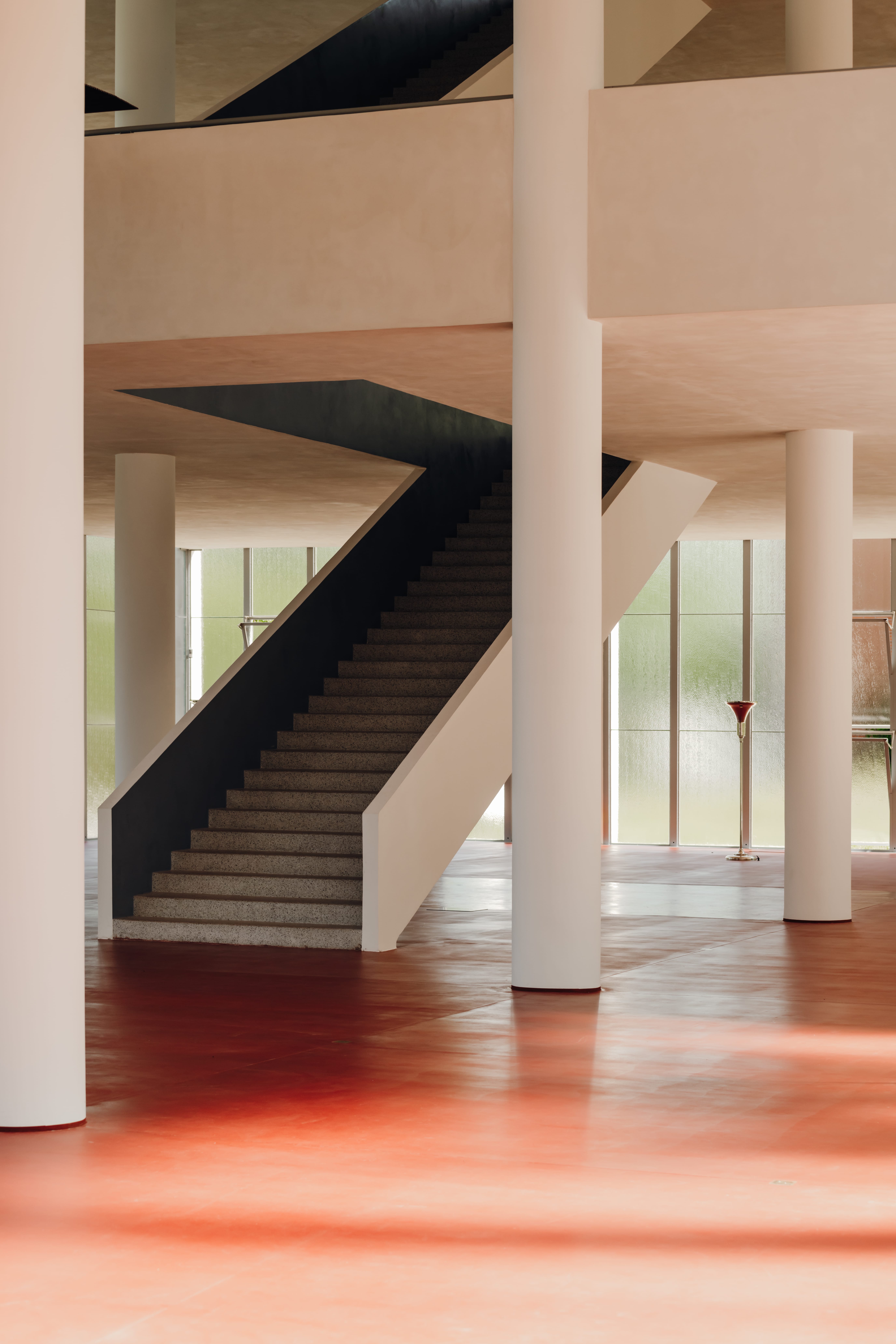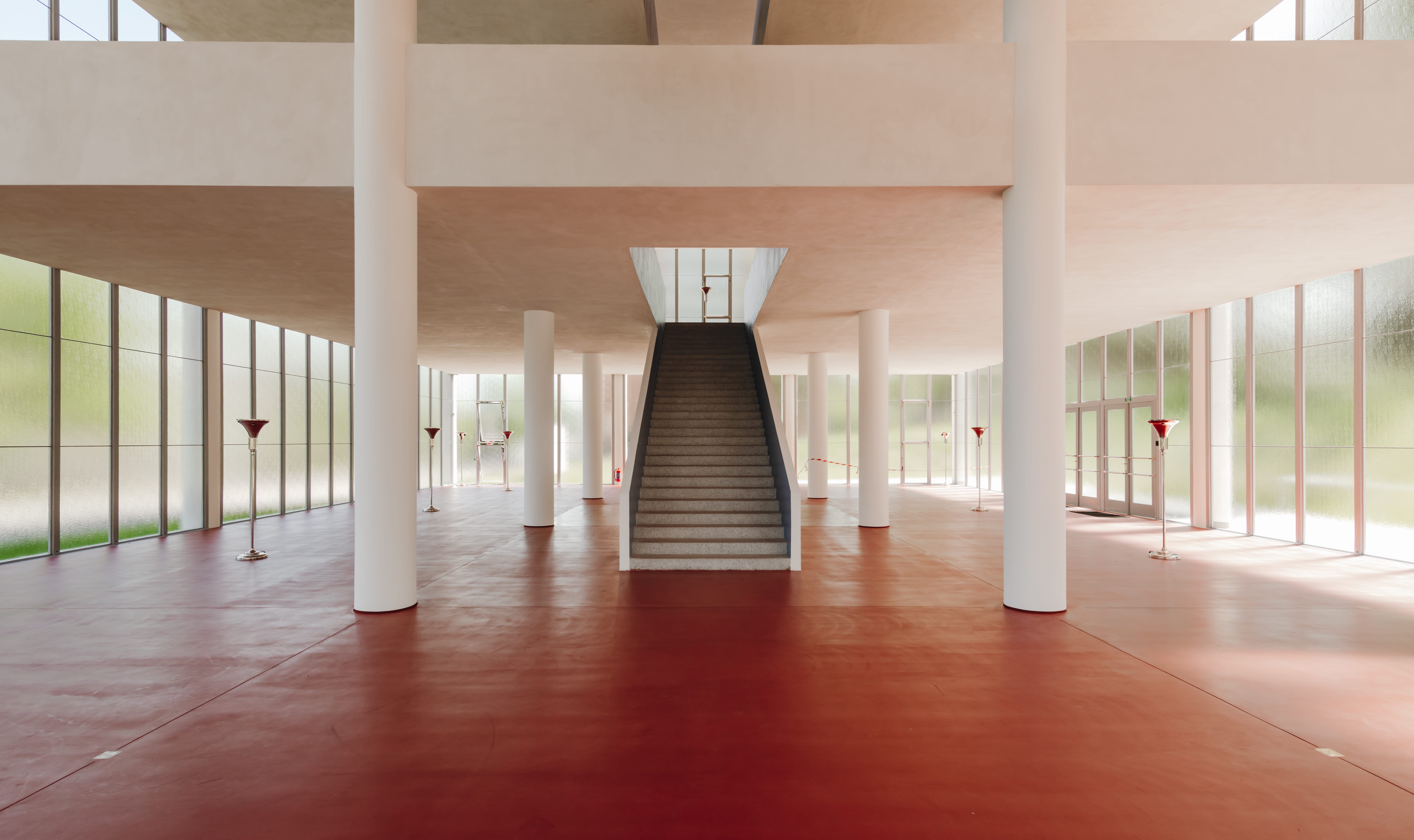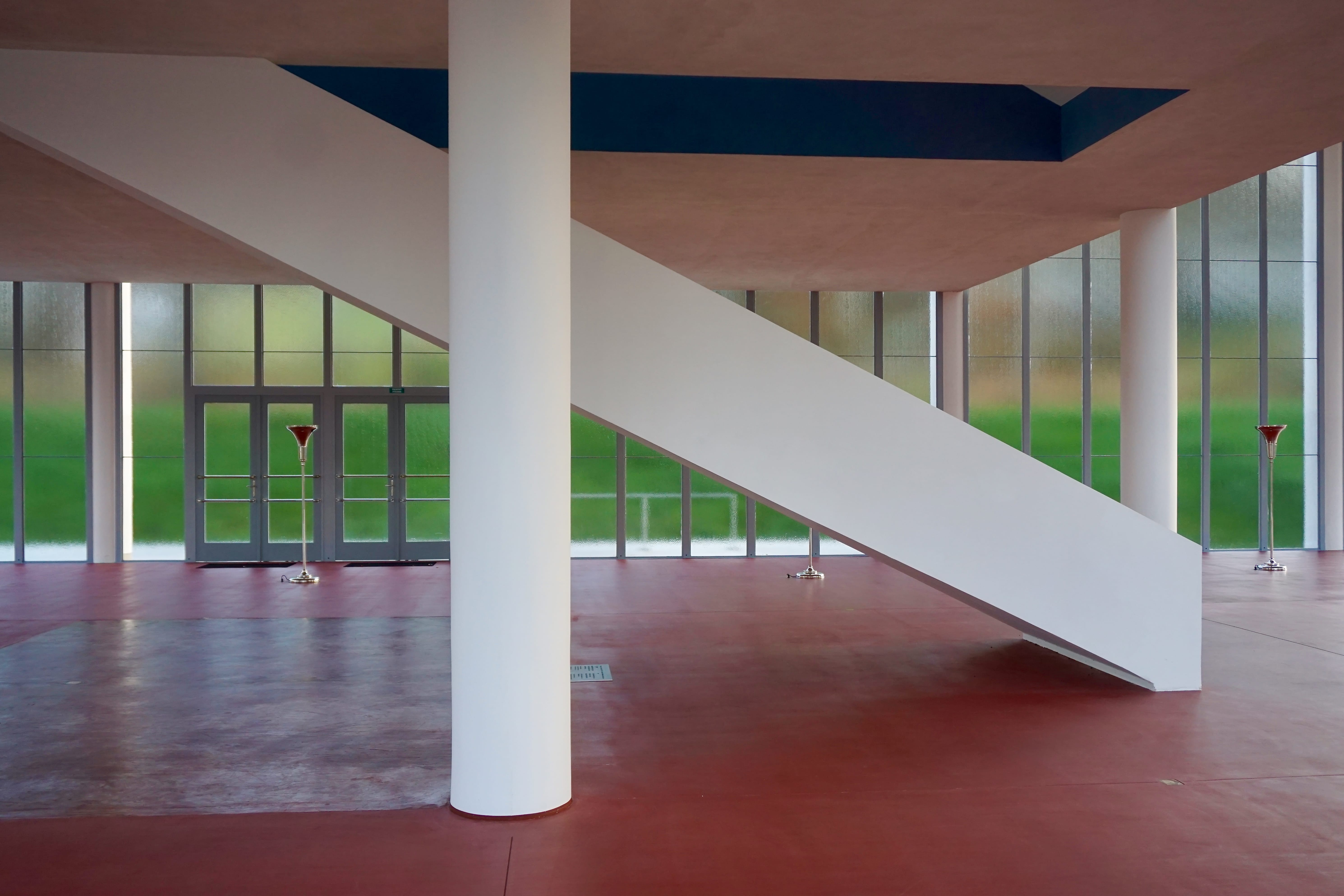Kolumny – powtarzalne i spokojne – podkreślają jego wiarę w rytm i system. A wnętrze pozbawione zbędnych detali jest architektonicznym odpowiednikiem batowskiej zasady: nie komplikować, nie dekorować ponad potrzebę, projektować tak, aby wszystko działało.