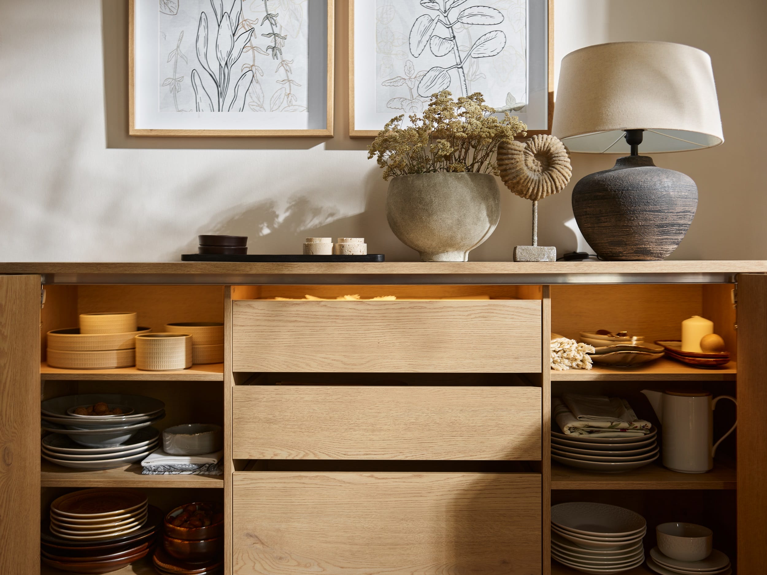 Dzięki zastosowaniu w szafach czy komodach systemu cichego domyku interakcja z meblem jest płynna i bezgłośna, co wspiera budowanie domowego azylu.