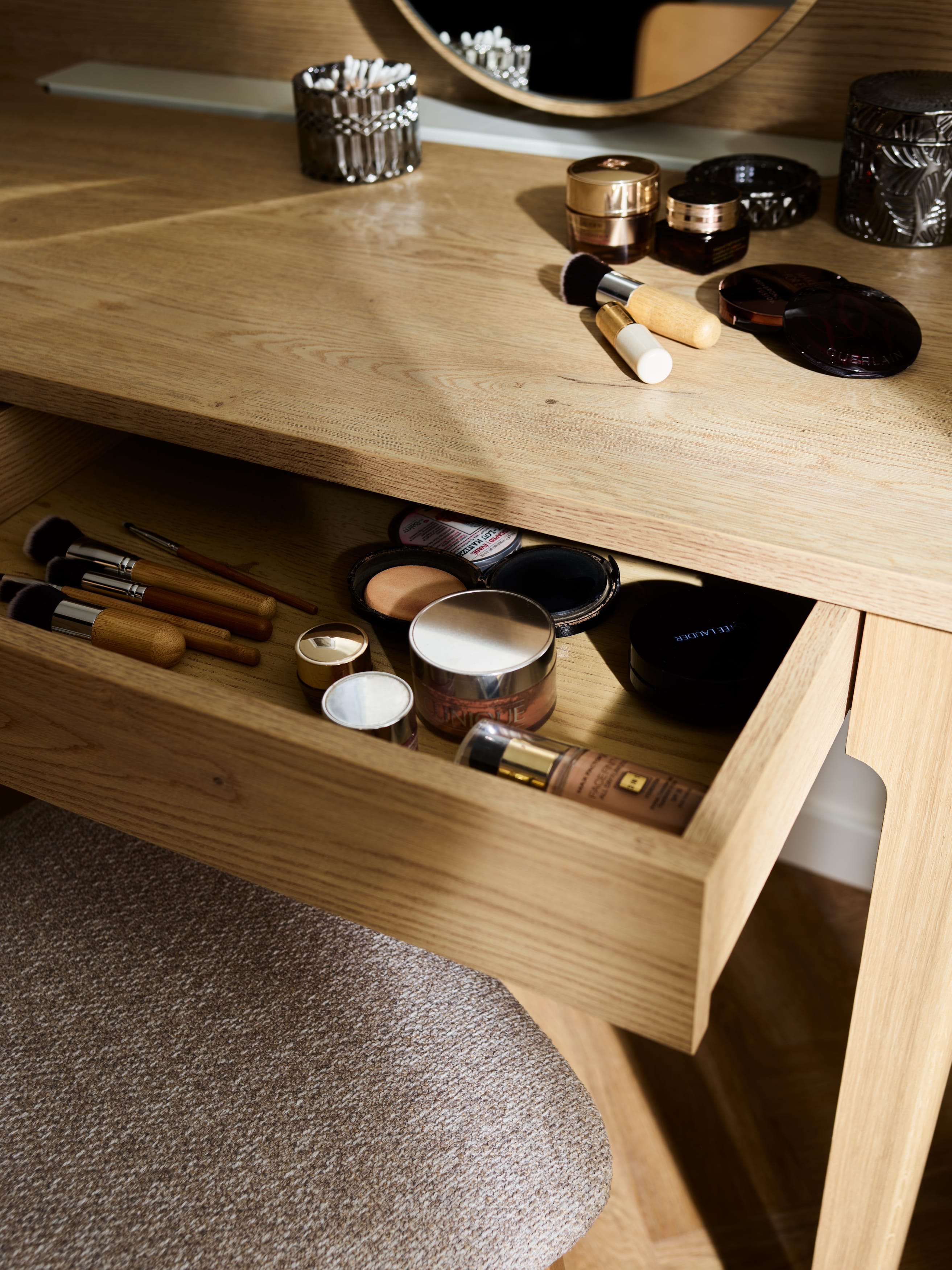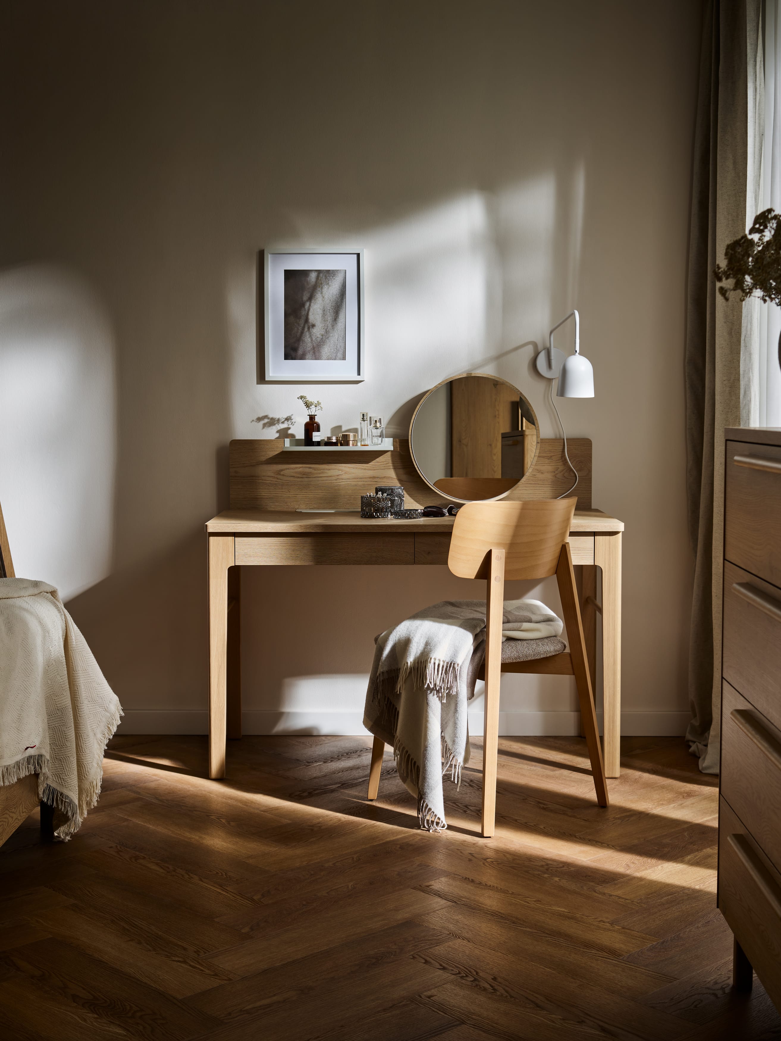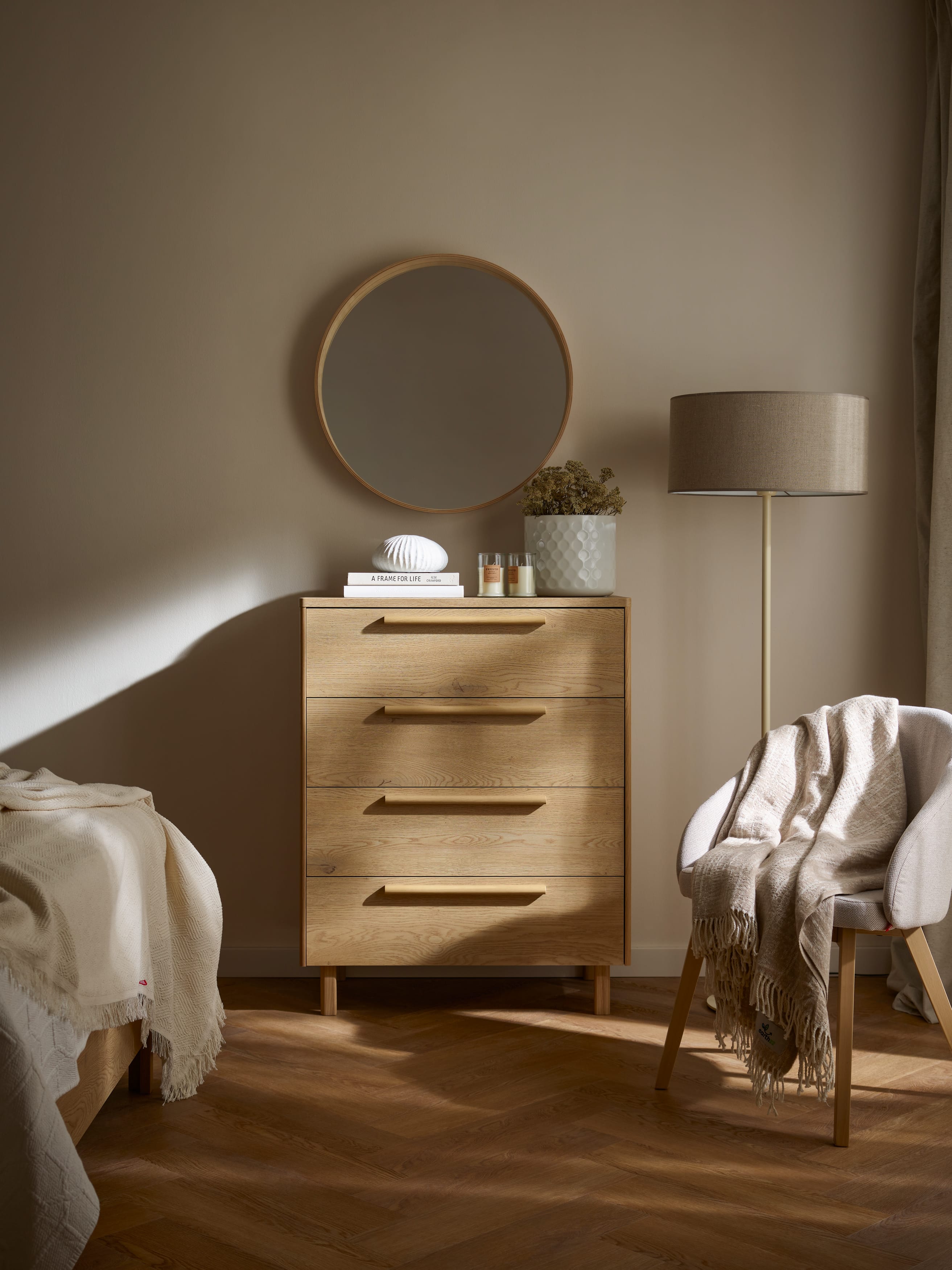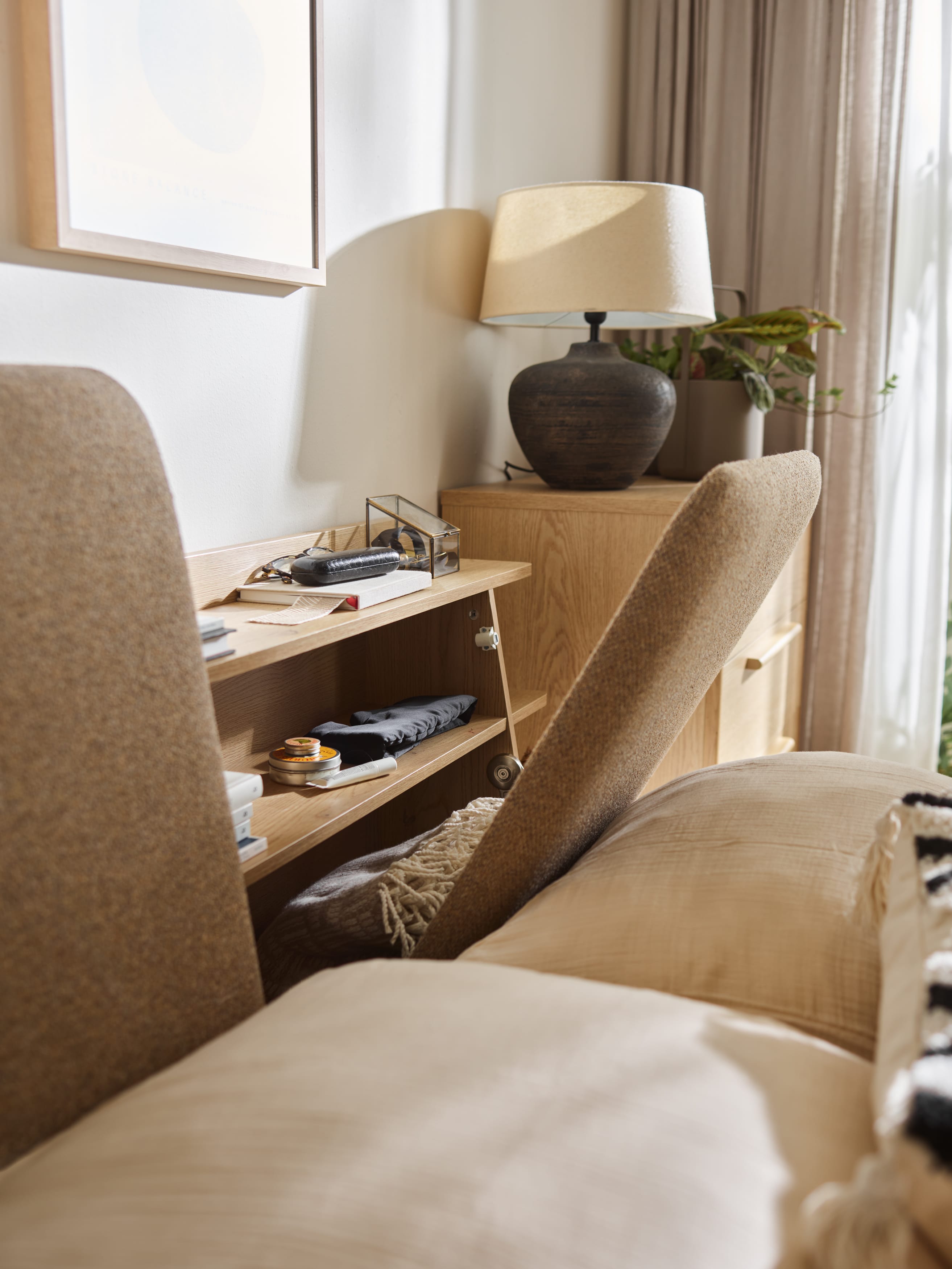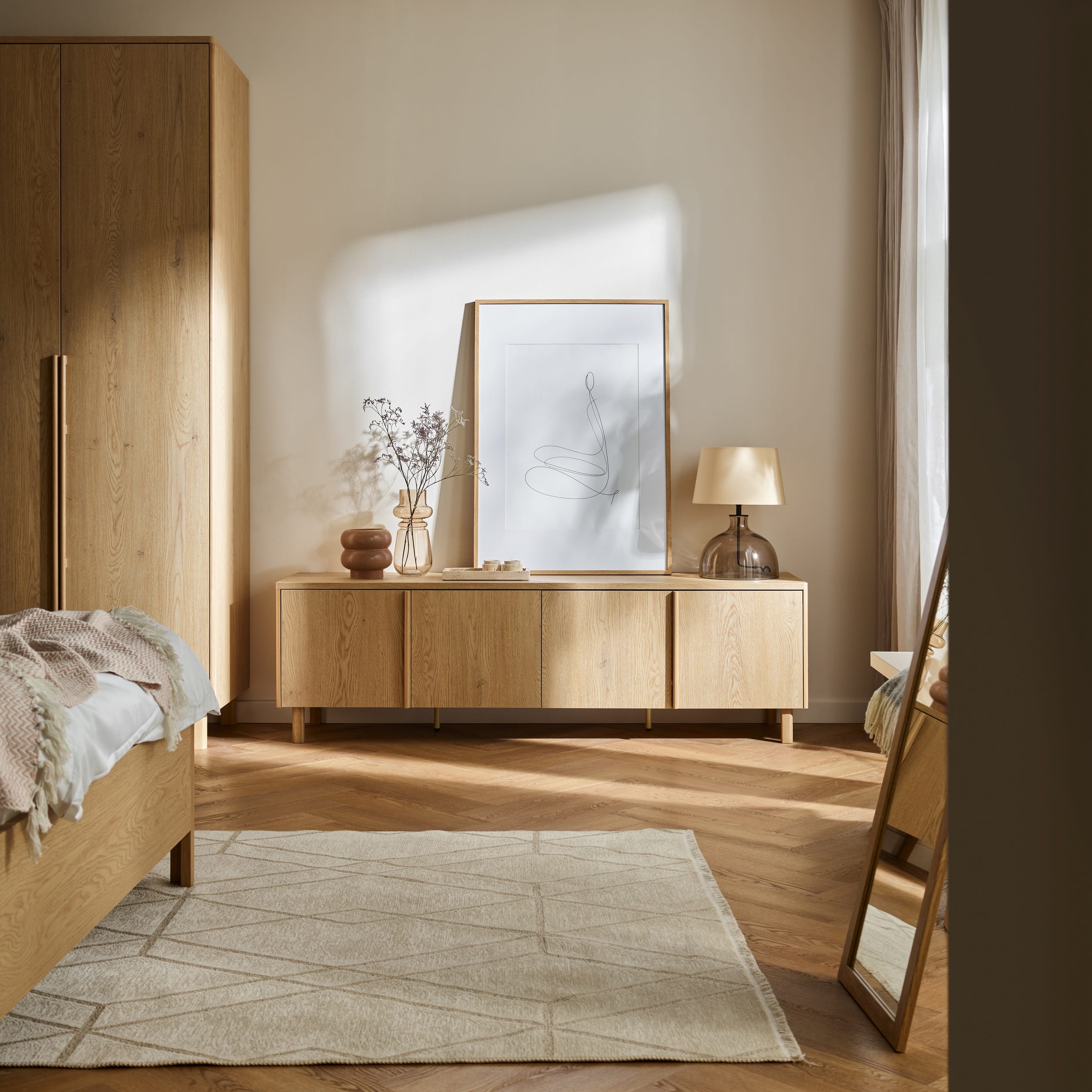 Minimalistyczne kształty mebli z kolekcji WELL przyciągają uwagę subtelnymi detalami – prostymi uchwytami z drewna dębowego. W całej kolekcji lite drewno dębowe wykorzystano także w stelażach i nogach mebli nadając kolekcji stabilność i szlachetność.