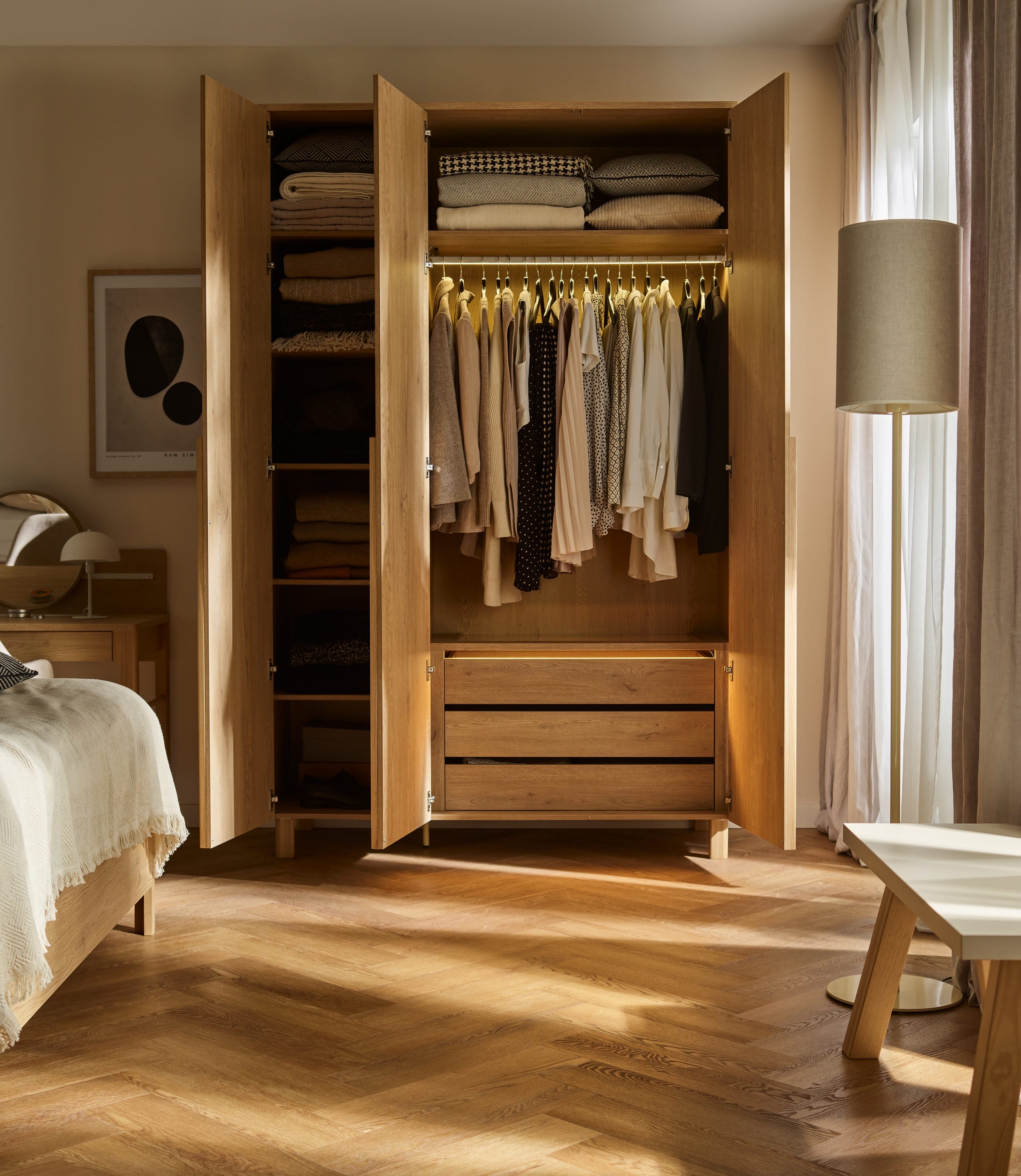 Wybór projektantów nie był przypadkowy. Zespół Tabandy od lat słynie z bezkompromisowego podejścia do materiału i fascynacji naturą. W kolekcji WELL ich unikalny język projektowy – pełen miękkich linii i szacunku do drewna – spotkał się z myśleniem użytkowym i technologicznym zapleczem VOX. Efektem jest kolekcja, który zamiast dominować we wnętrzu, tworzy dla niego kojące tło. Jej wszechstronność pozwala urządzić dom czy mieszkanie w spójnym stylu – od strefy livingowej, przez jadalnię, sypialnię, garderobę, aż po miejsce do pracy. Dzięki prostocie formy, naturalnym materiałom i funkcjonalnym rozwiązaniom, kolekcja WELL łączy komfort, elegancję i praktyczność w jednym.