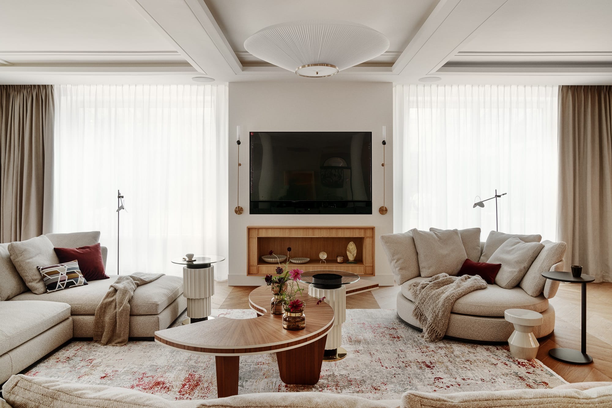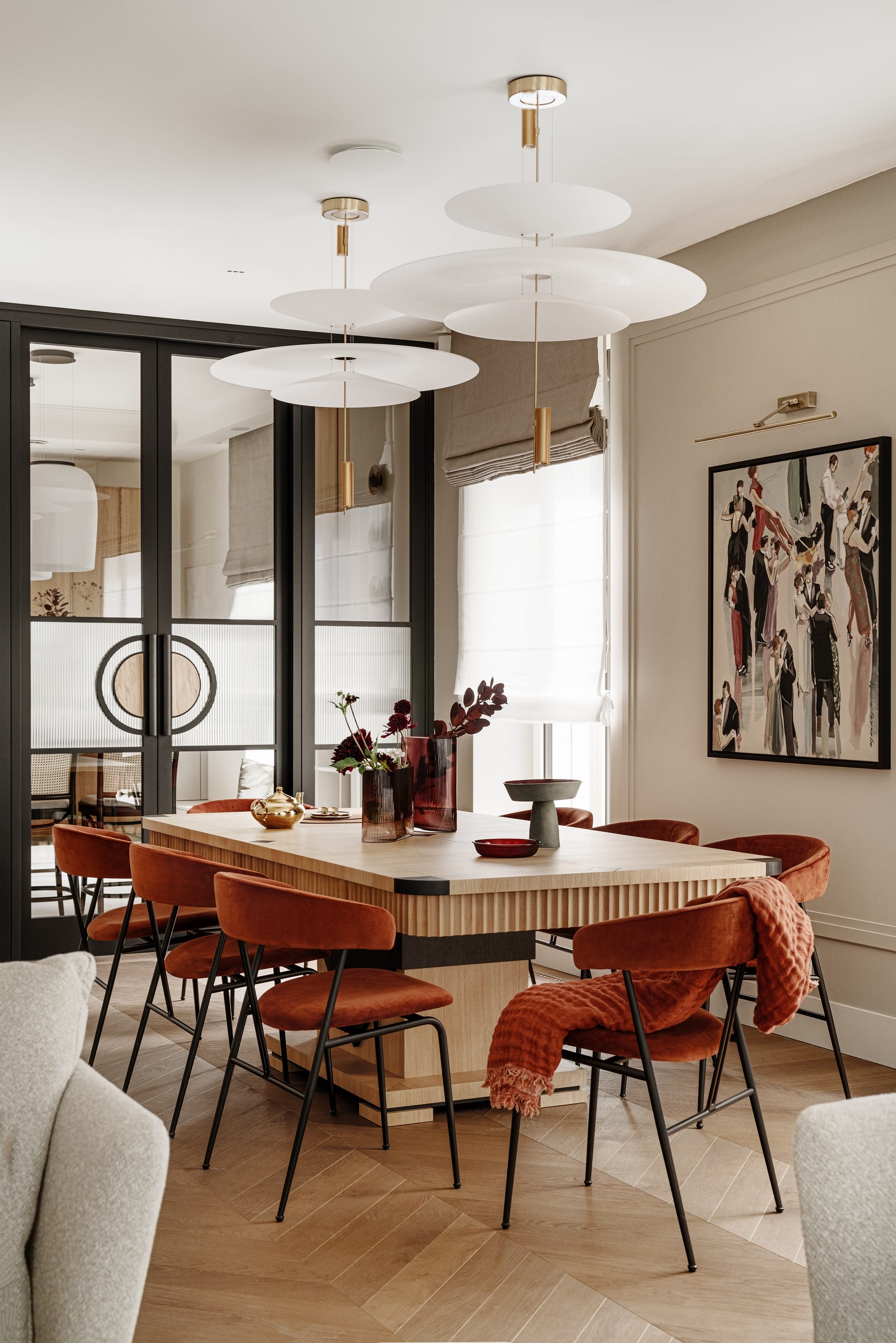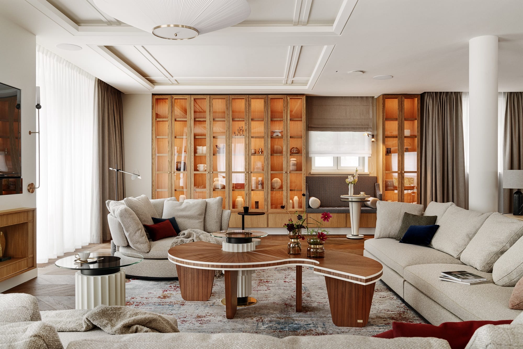 Całość realizacji zajęła trzy lata, podczas których kompleksowo opracowano wnętrze – od podłóg i sztukateryjnych sufitów, przez stolarkę drzwiową, aż po meble na wymiar, oświetlenie i ekspozycję kolekcji obrazów i rzeźb.