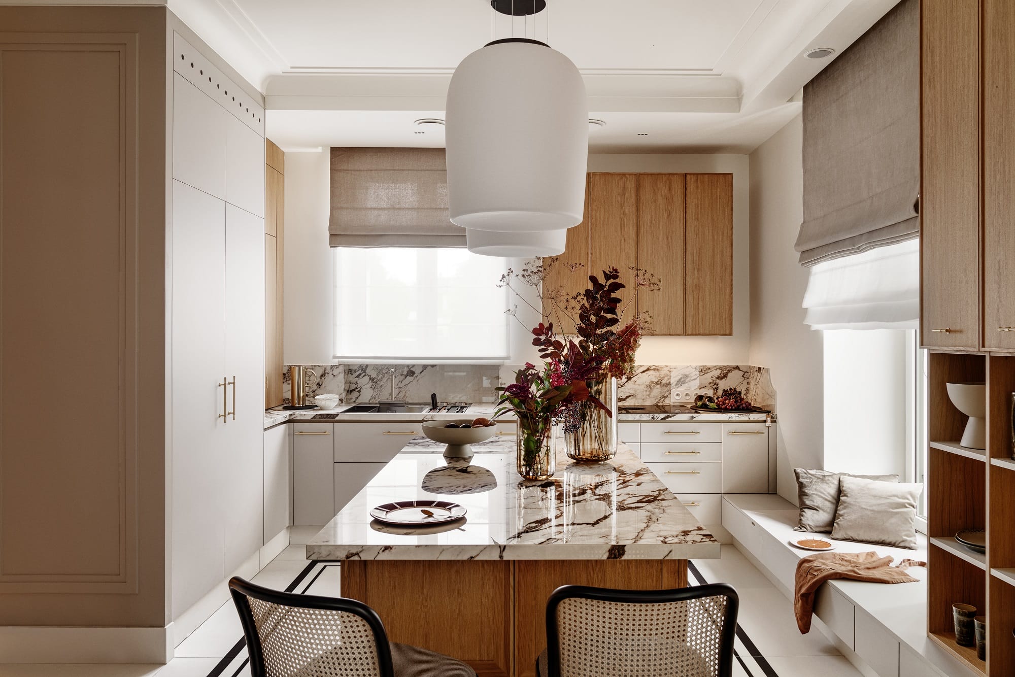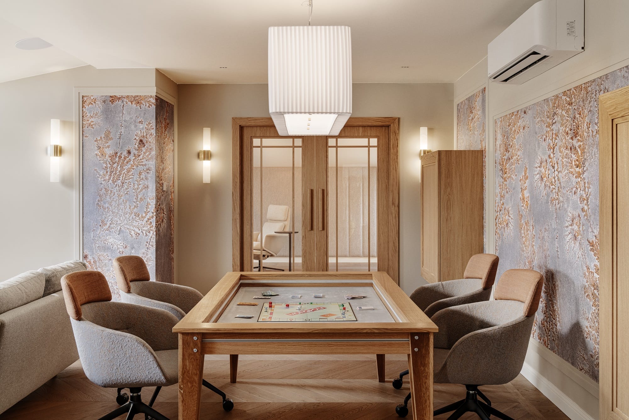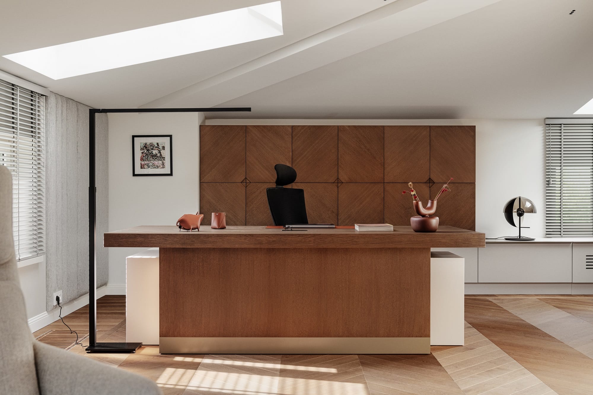 Całość realizacji zajęła trzy lata, podczas których kompleksowo opracowano wnętrze – od podłóg i sztukateryjnych sufitów, przez stolarkę drzwiową, aż po meble na wymiar, oświetlenie i ekspozycję kolekcji obrazów i rzeźb.