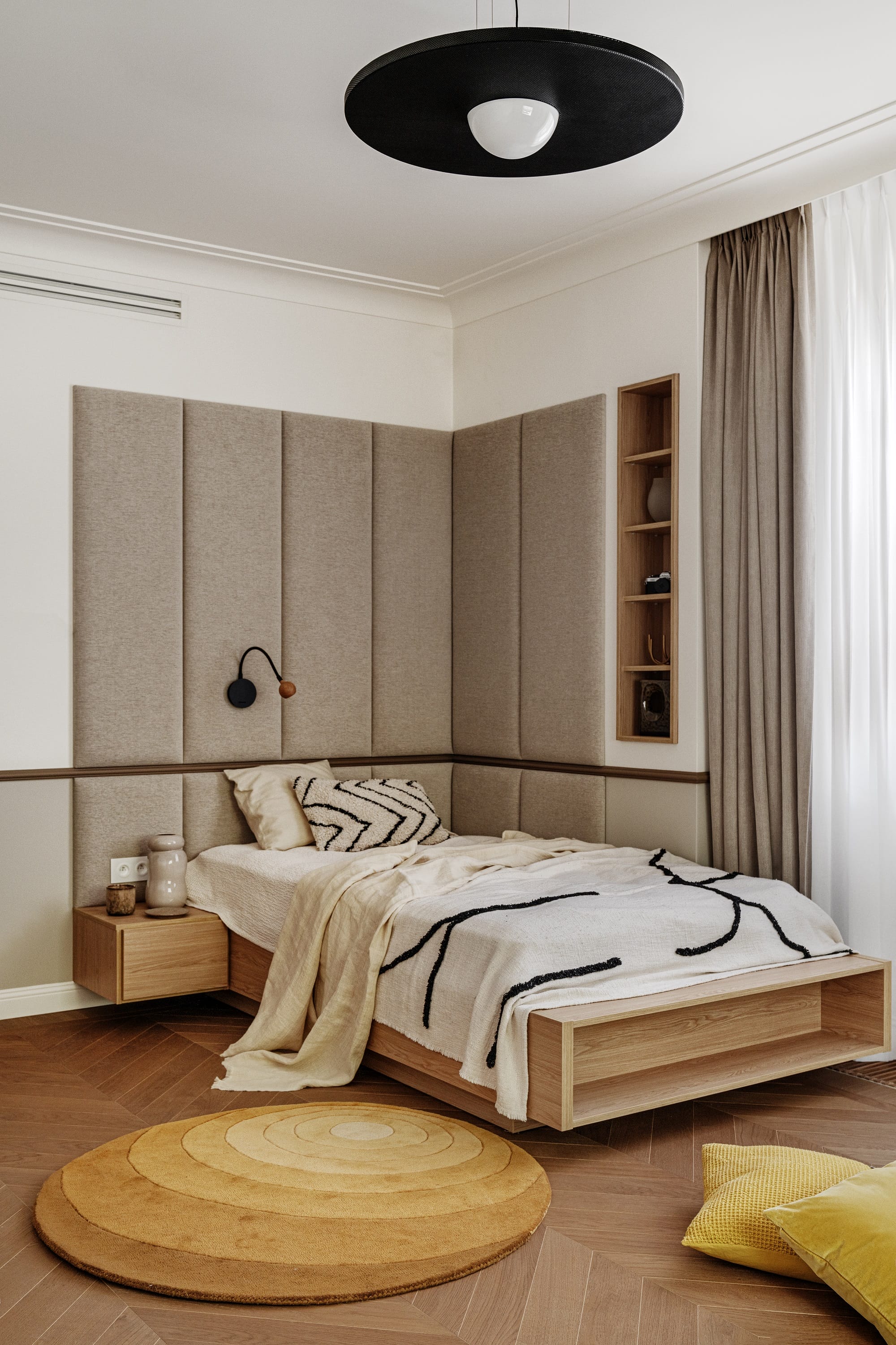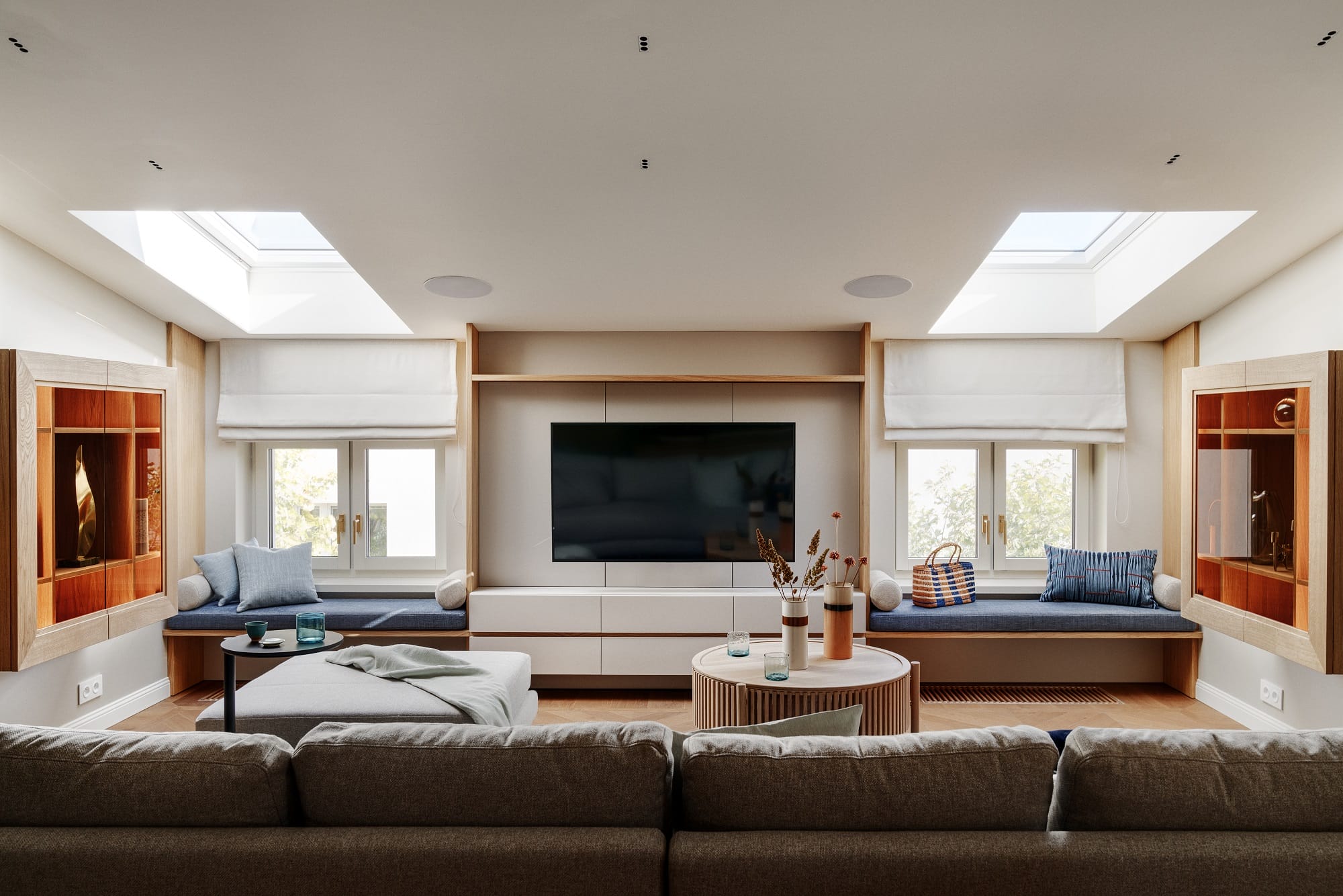 Początkowo na poddaszu miał powstać pokój gościnny. W trakcie realizacji okazało się jednak, że „gość” będzie stały – pojawił się piąty członek rodziny. Projekt zmienił więc kurs, a poddasze zyskało status najbardziej pożądanej strefy w całym domu.