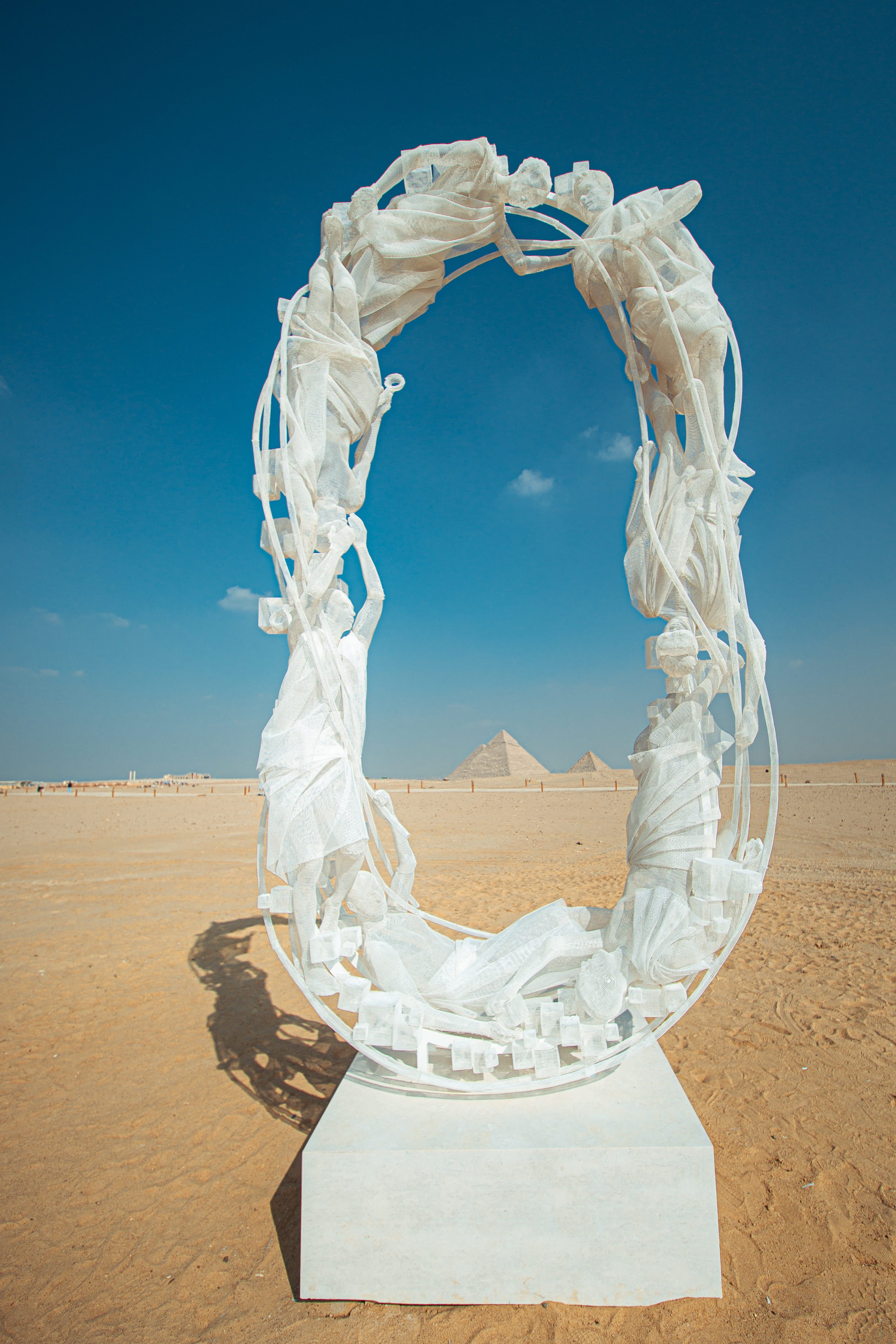 W tym roku motywem przewodnim jest wieczność i nieśmiertelność – idee wpisane w historię piramid. Bo to właśnie piramidy w Gizie tworzą klimat wydarzenia i niepowtarzalną scenografię dla prezentowanych obiektów. I nie chodzi tu o to, aby ustawić nowoczesną sztukę obok starożytnych cudów dla zaskakującego efektu. Wystawa stawia pytanie, czy i w jaki sposób współczesna praktyka artystyczna może rezonować z historycznym kontekstem, zamiast z nim konkurować.