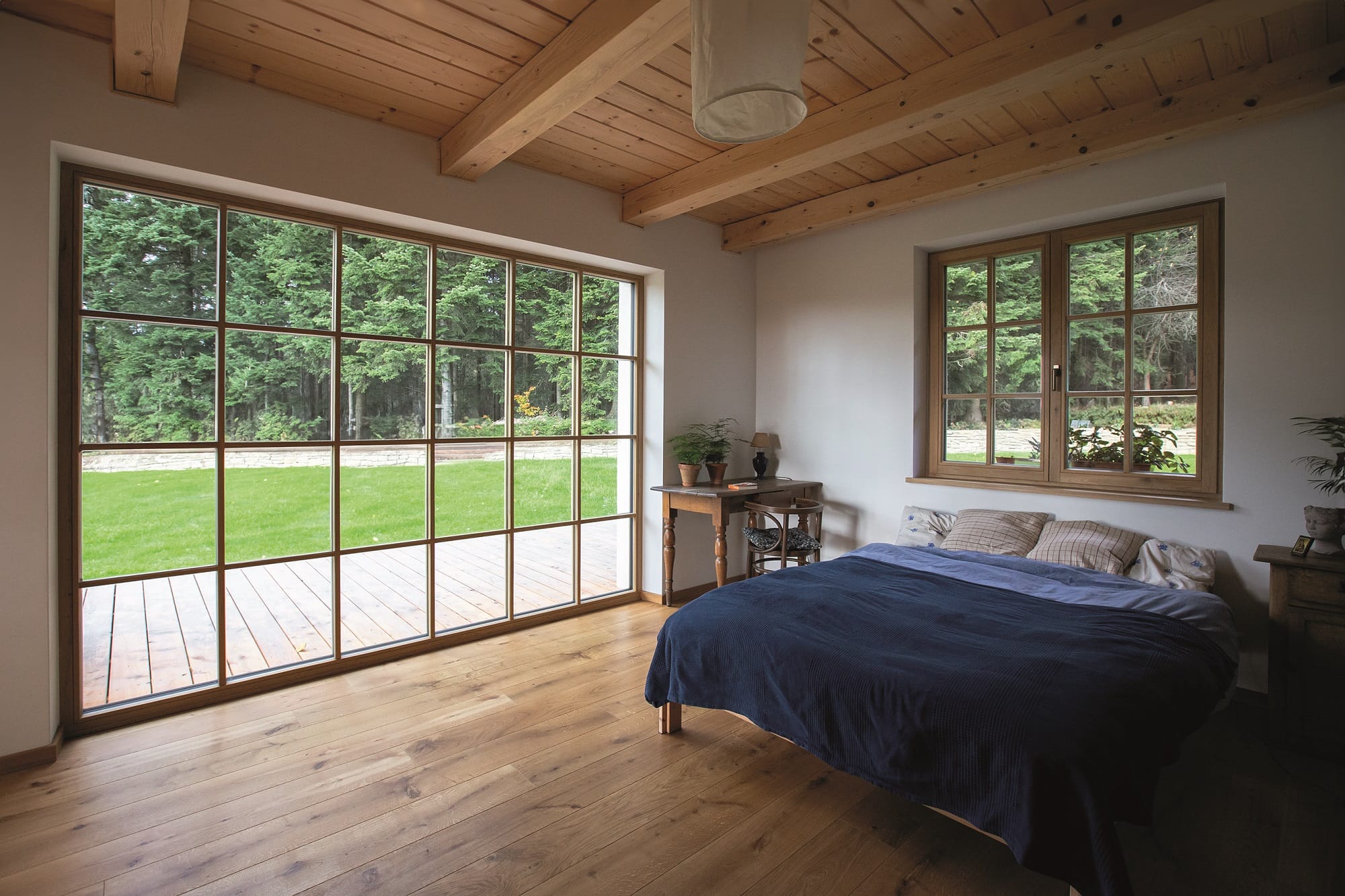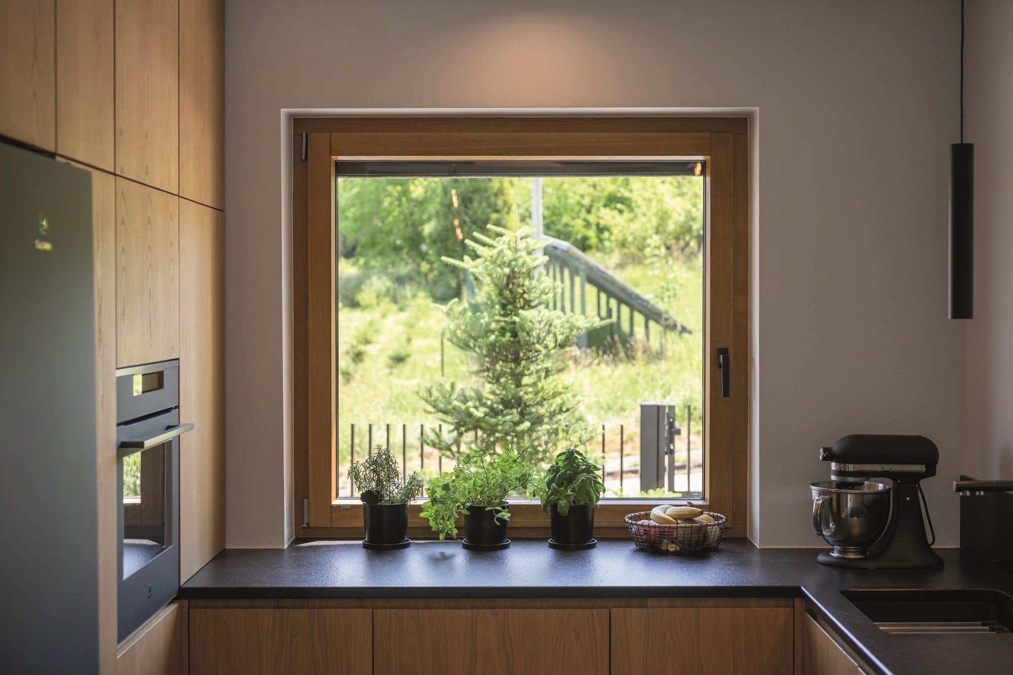 Okna Innoview oferują wyjątkową trwałość dzięki połączeniu drewnianej ramy z aluminiową okładziną, co zwiększa odporność konstrukcji na lata.