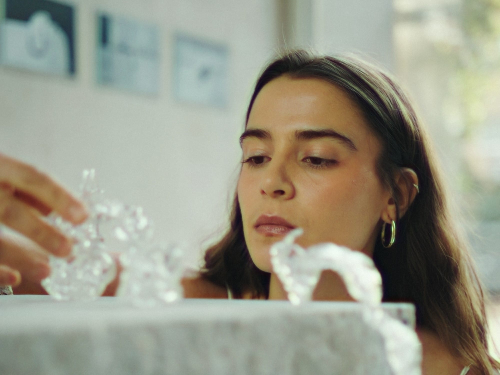 Polskie projektantki opowiadają często o patriarchalnych strukturach, w których kobieta w hucie bywa traktowana z pobłażaniem. Tym bardziej ciekawi mnie historia Filomeny, której nie wystarczyły szkice. Pracuje ona ze szkłem w sposób niemal alchemiczny, doświadczając transgresyjnej integracji z materiałem.