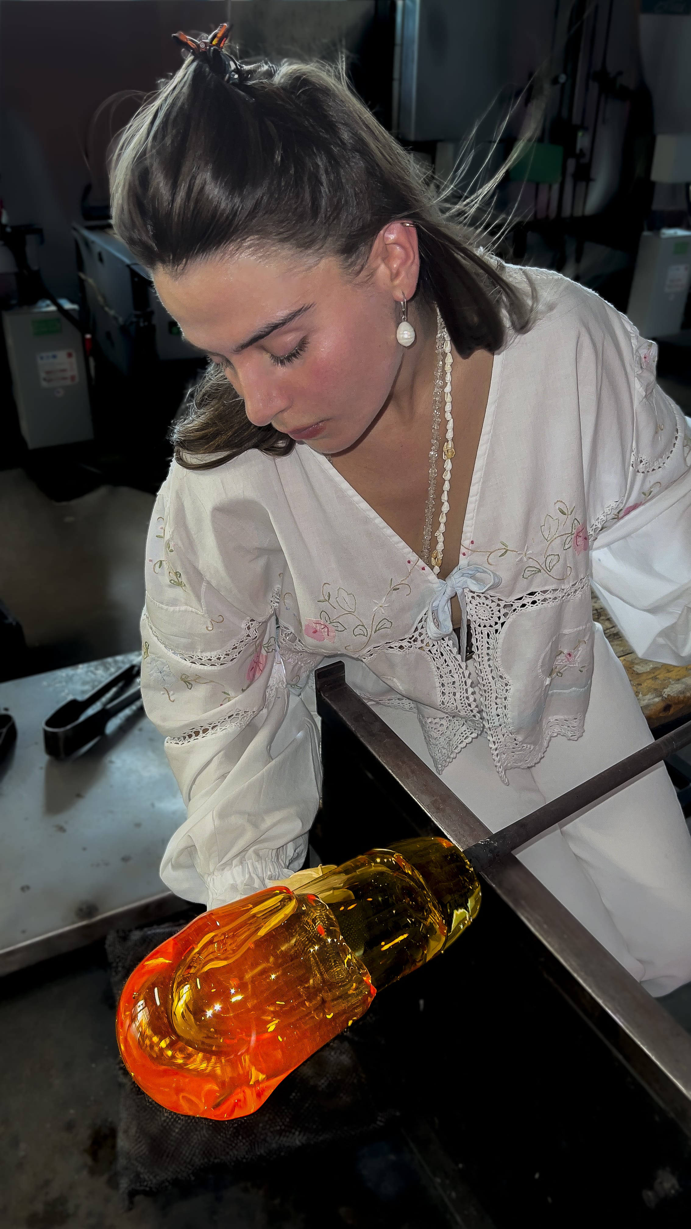 To prawda, praca ze szkłem jest fizyczna, wymaga niemal sportowego hartu, odporności na wysoką temperaturę, szybkiego reagowania i podejmowania decyzji. To prędko weryfikuje potencjalnych kandydatów, często studenci rezygnują już po pierwszych zajęciach, gdy zderzają się z intensywnością pracy i koniecznością pełnego zaangażowania swojego ciała.