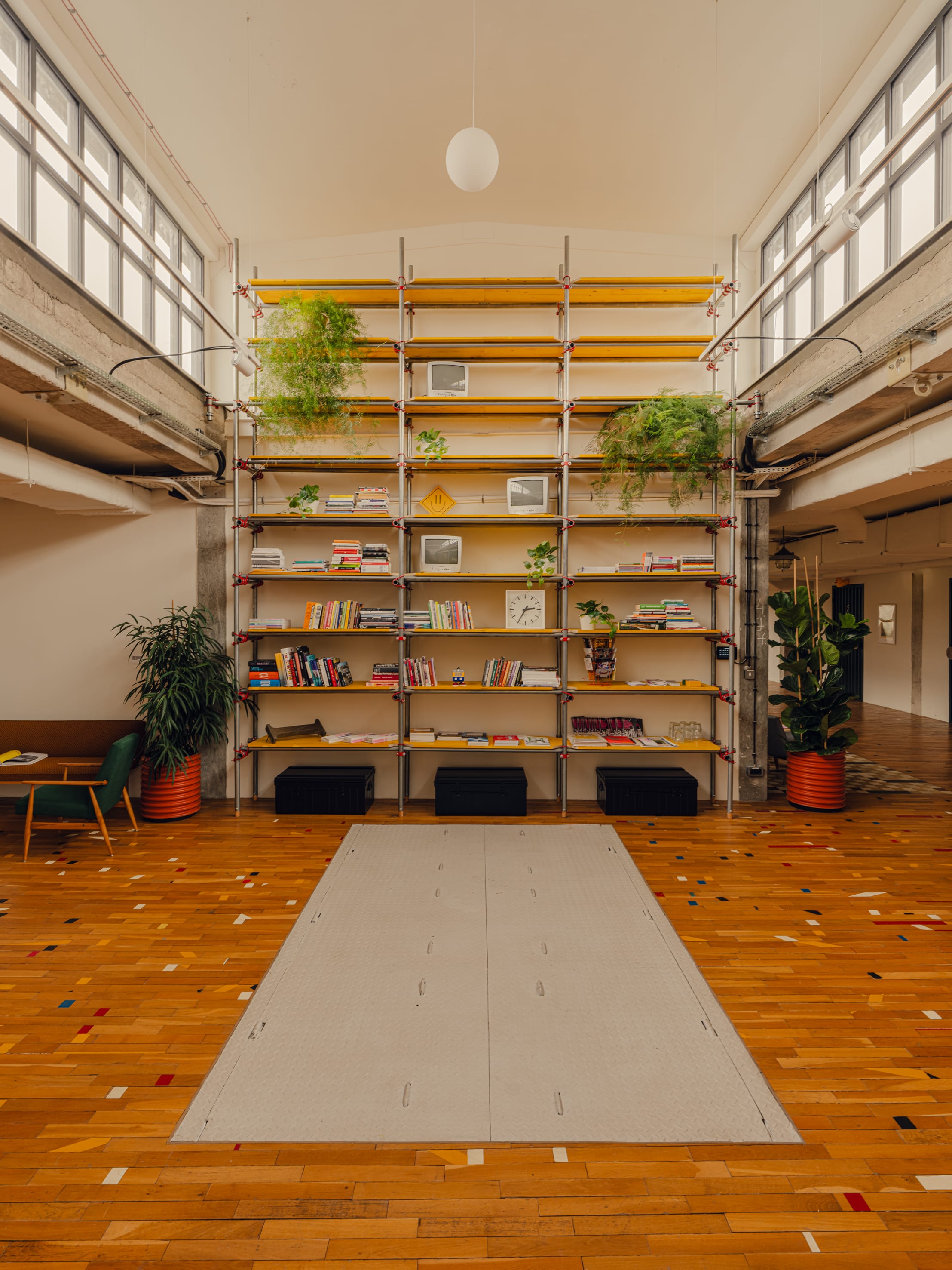 W przestrzeni wykorzystano także przeszklenia ze zdemontowanych świetlików, stare płytki kamionkowe, odpady kamienne oraz elementy z przetworzonego plastiku, m.in. ze skrzynek transportowych z pobliskiej 100czni. Meble, które nie pochodziły z recyklingu, wykonano na miejscu metodą D.I.Y., z myślą o łatwym demontażu i ponownym użyciu materiałów.