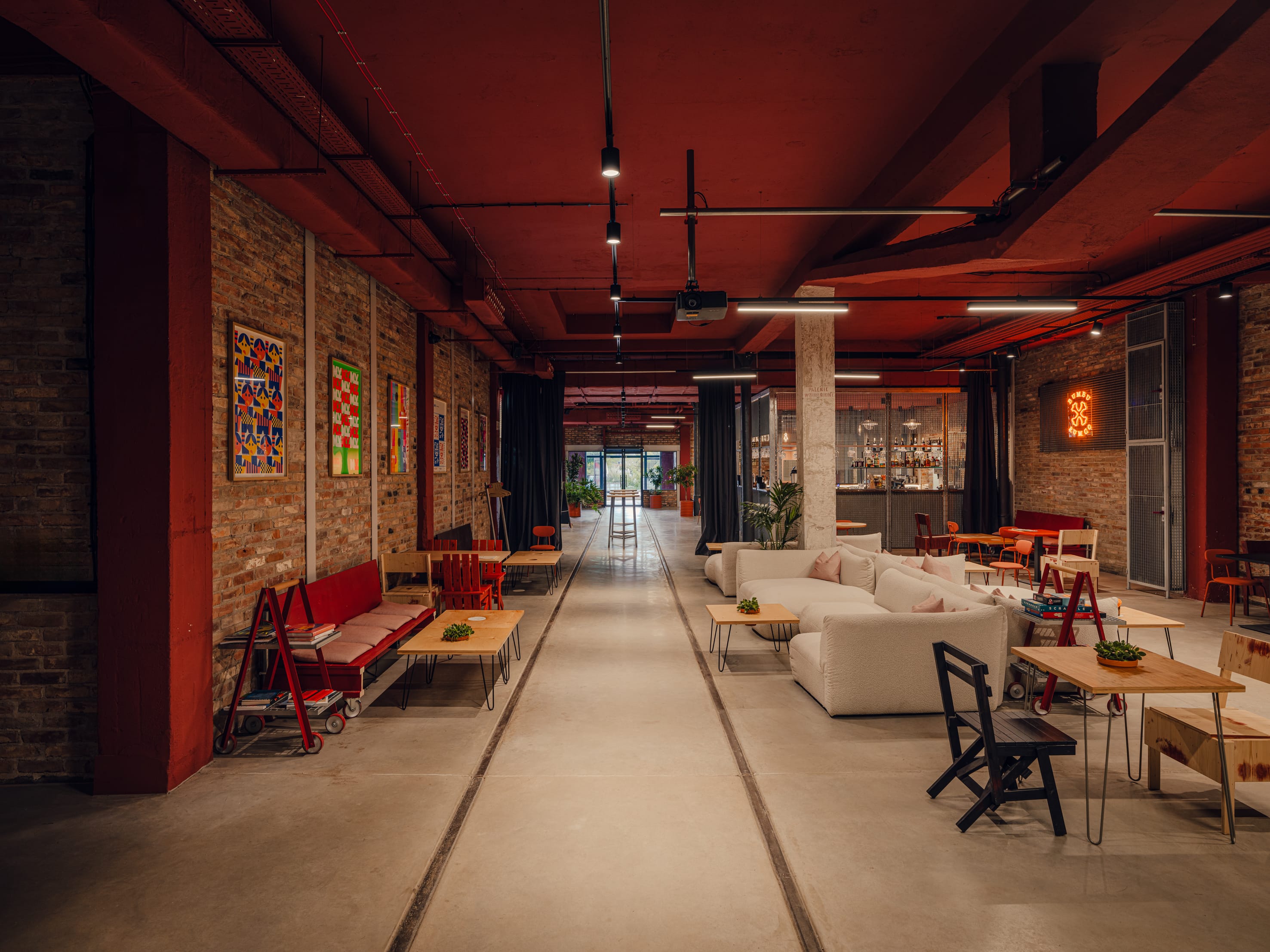 Wnętrze Grid Arthub w dawnej hali stoczniowej w Gdańsku