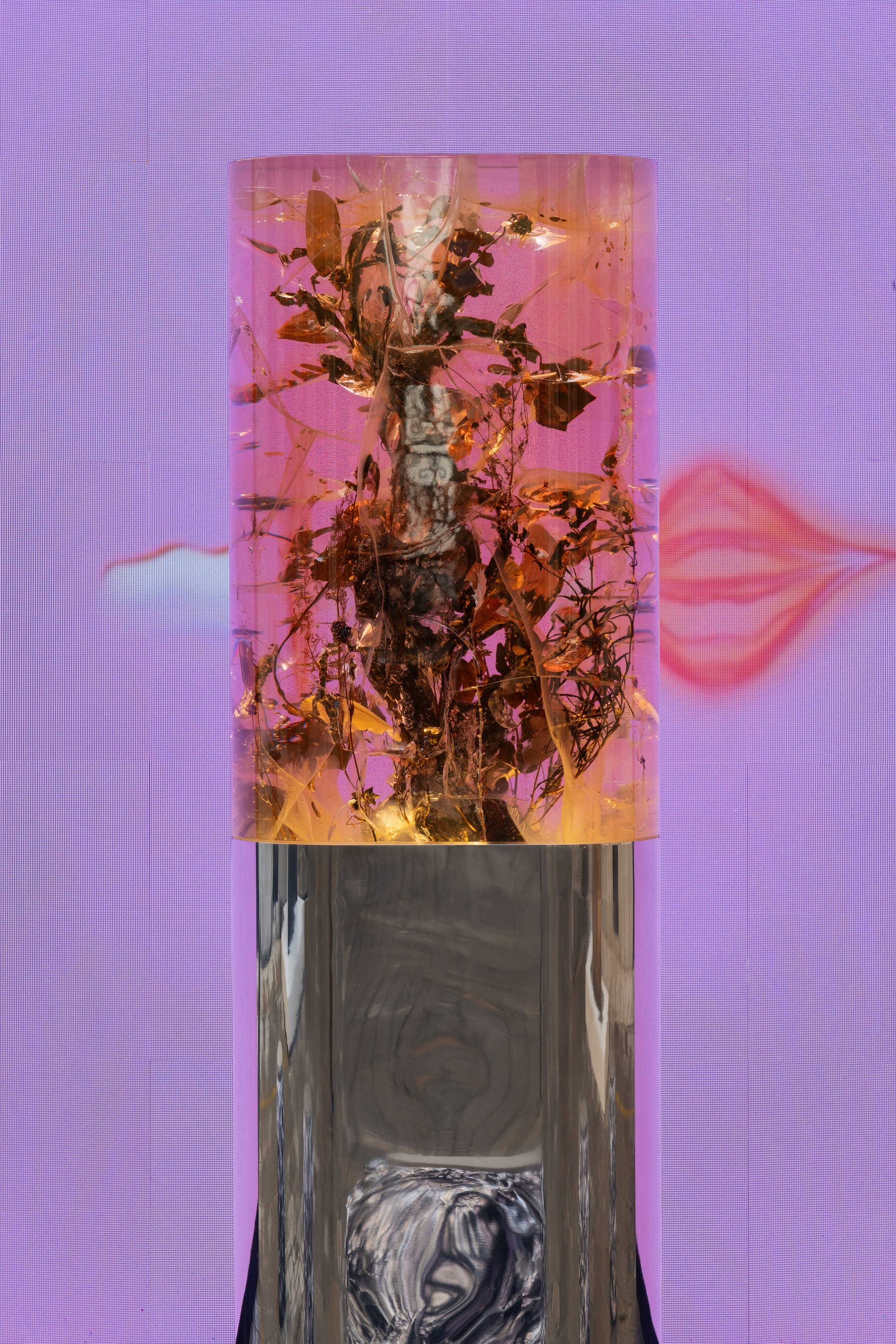 Wystawę otwiera Flower Journey, monumentalny portal będący fuzją technologii druku 3D i tradycyjnego odlewu w brązie. Jego forma, nawiązująca do estetyki średniowiecznych katedr oraz secesji, skrywa na odwrocie botaniczne kapsuły. Przechowywane w nich „komercyjne” rośliny stają się symbolem imperatywnego dążenia ludzkości do całkowitego zapanowania nad naturą.
