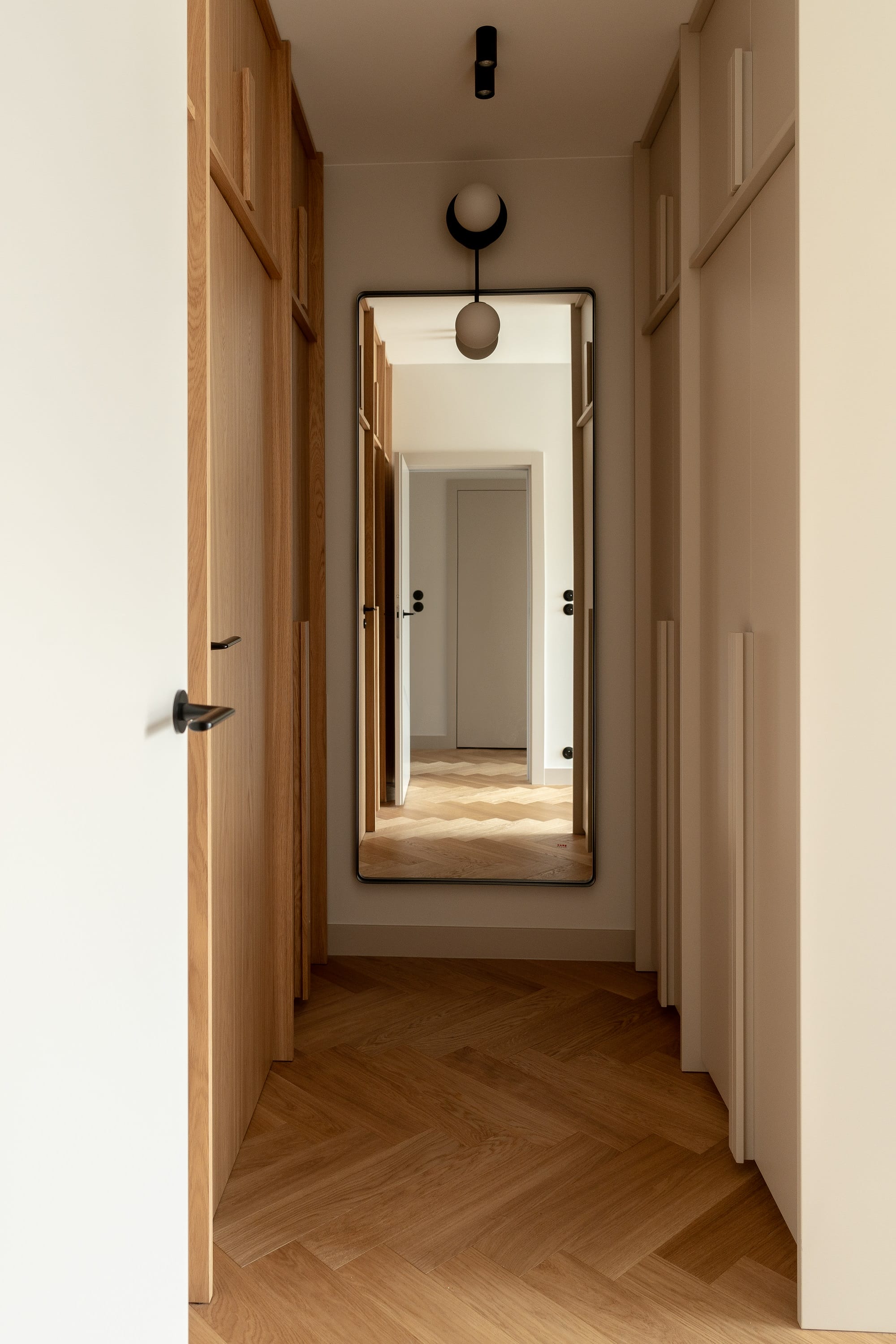 Chociaż na co dzień mieszkają w Szwajcarii, tu, w Warszawie, chcieli mieć komfortowe pied-à-terre. Odkąd na świecie pojawiła się ich córeczka, zależało im na własnym miejscu, do którego będą mogli przyjeżdżać – spokojnym, cichym, ale dobrze skomunikowanym z resztą miasta. Rozważali kilka lokalizacji, ostatecznie wybór padł na zielone Kabaty. Apartament na nowym osiedlu w pobliżu lasu zdecydowali się oddać w ręce ID Studio, prowadzonego przez architektkę Katję Sadziak.