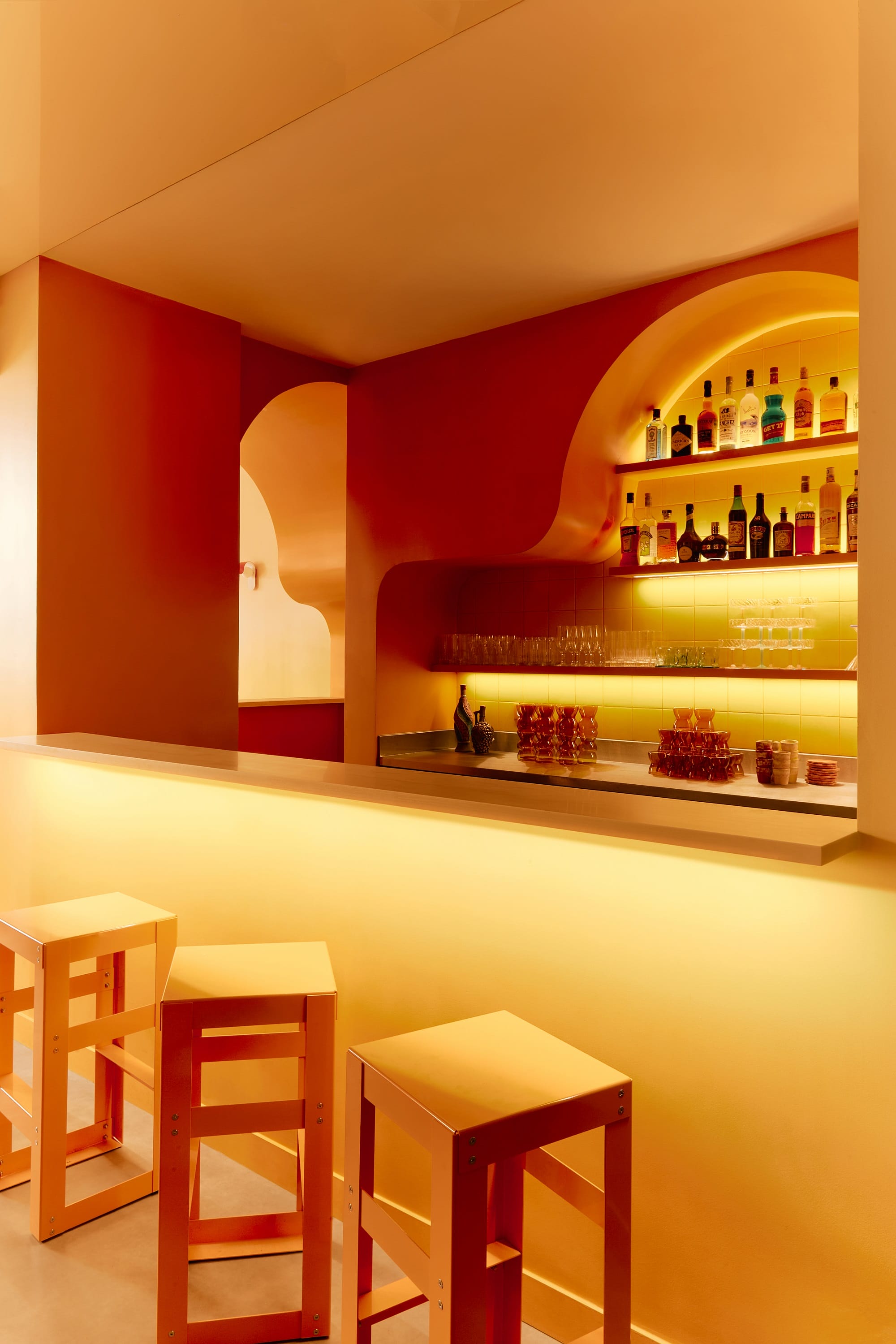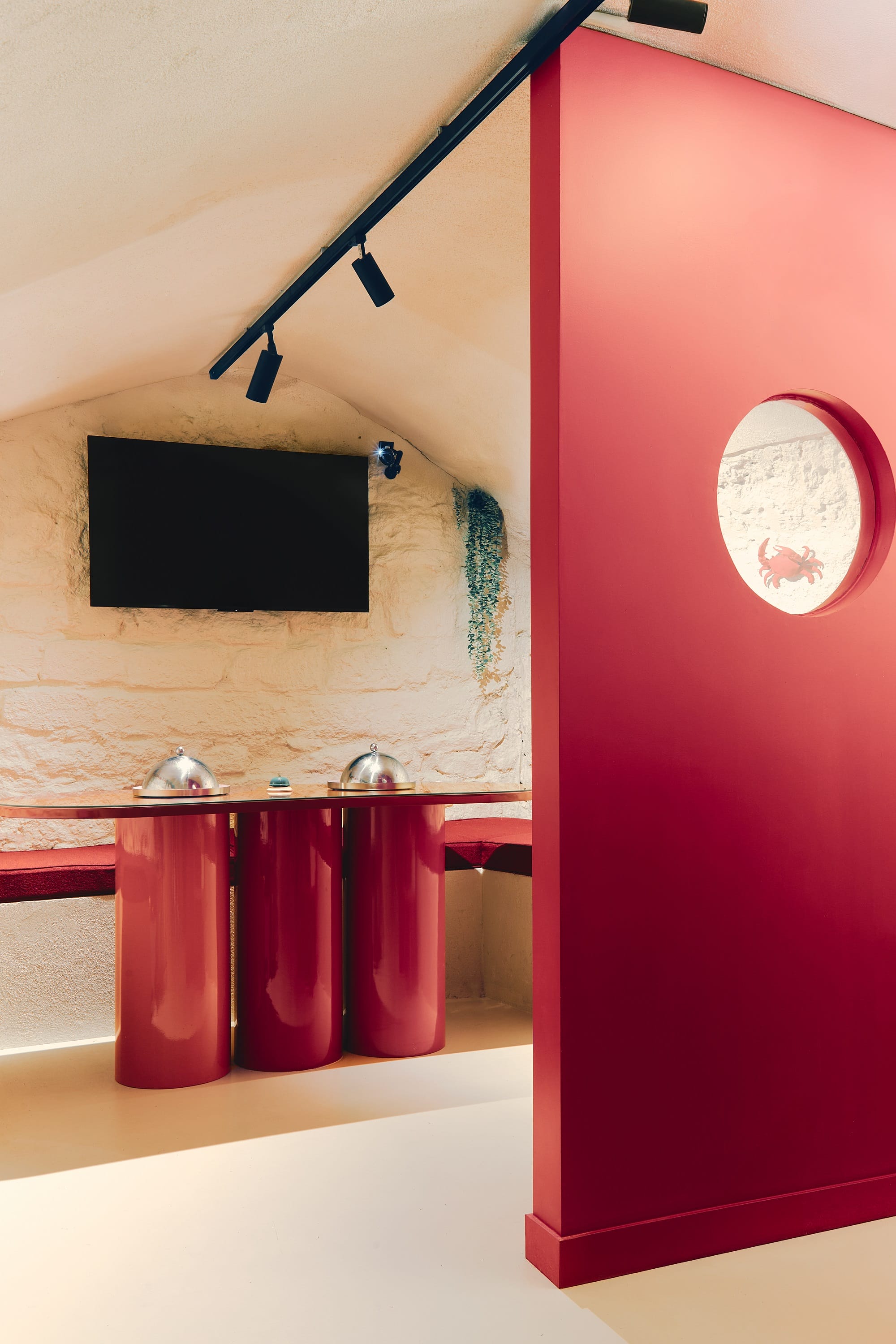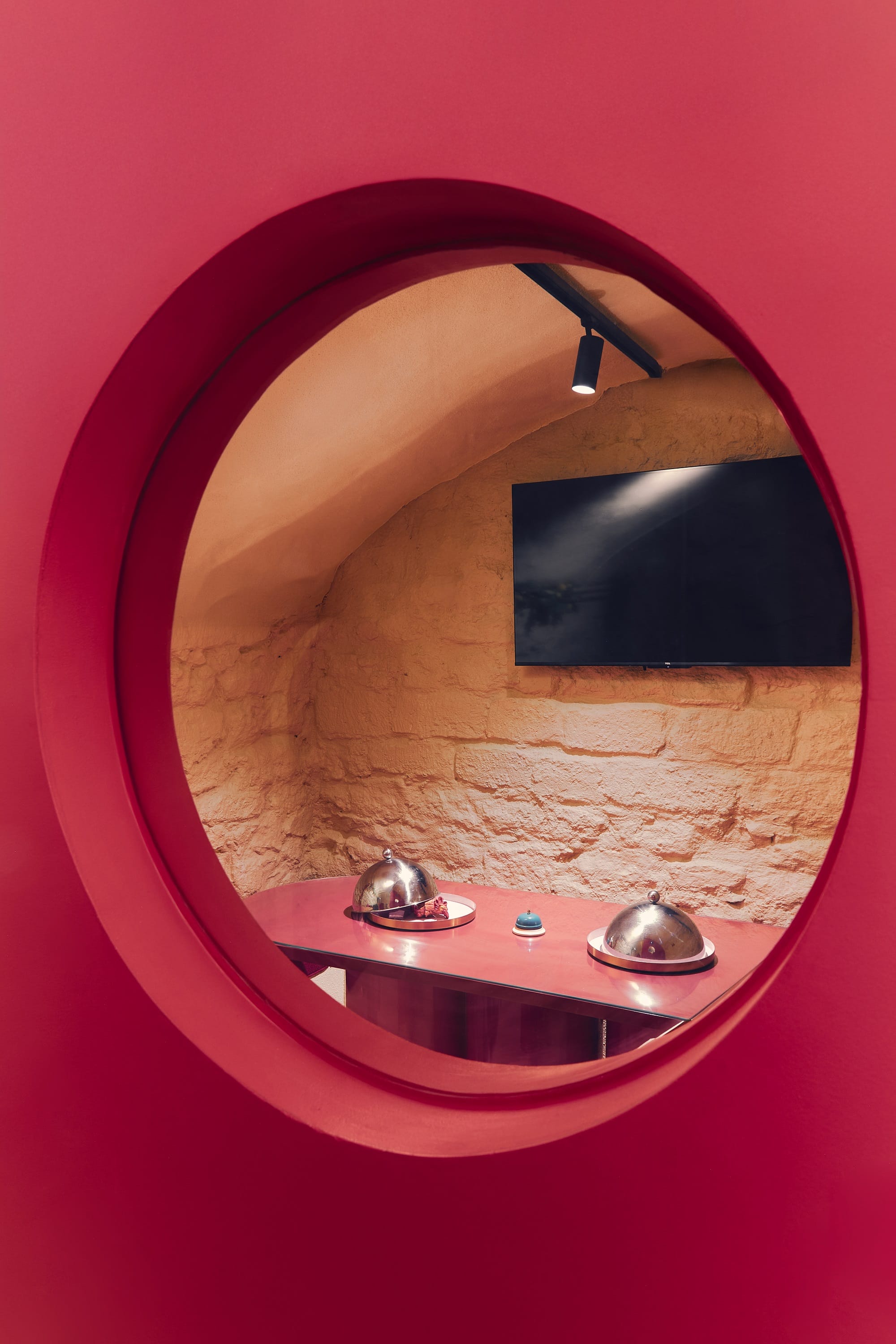 Charakterystyczny dla niego zestaw kolorów i teatralnych efektów wypełnia przestrzeń, budując atmosferę i rytm poszczególnych aktywności. Każda z czterech gier ma własną scenografię, a dopełnieniem przestrzeni jest bar, pomyślany jako miejsce spotkań i rozmów w przerwie od rozgrywek.