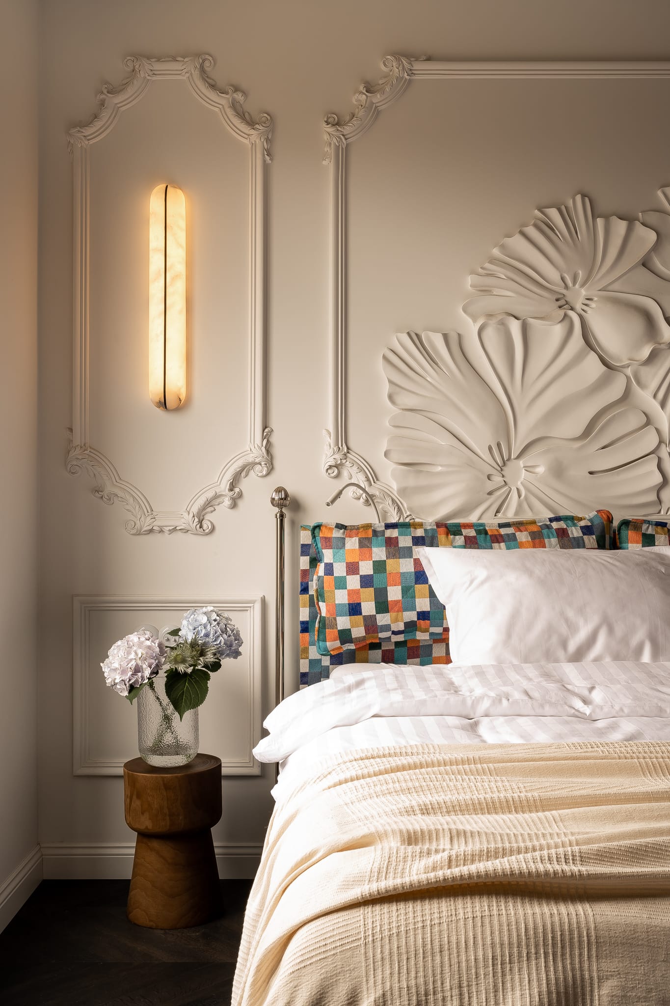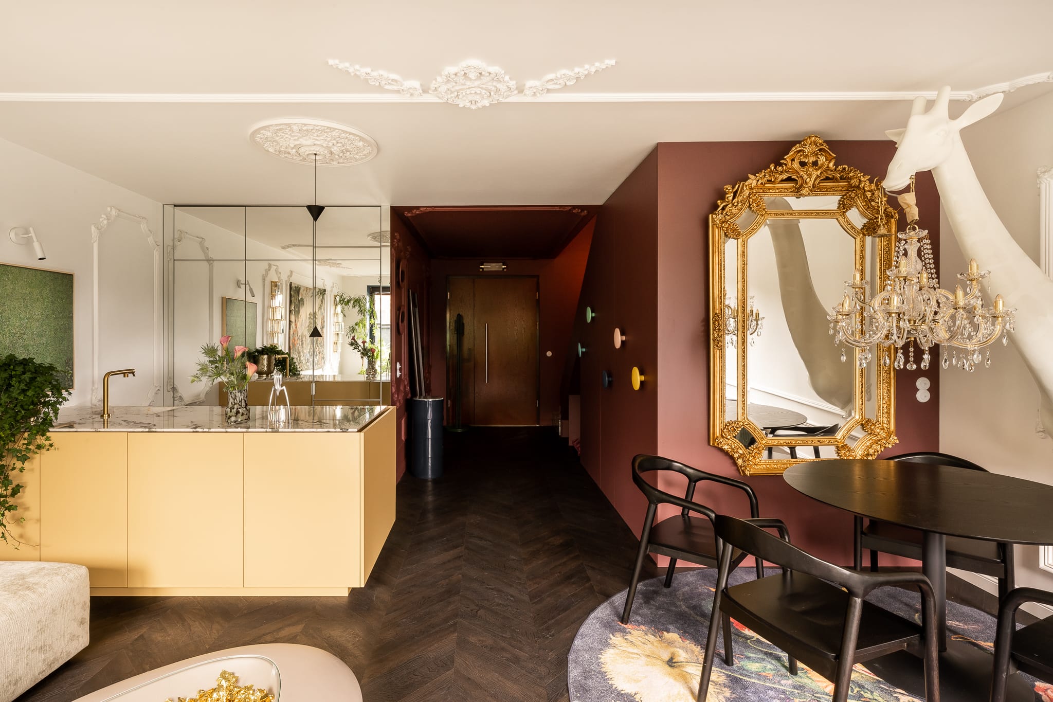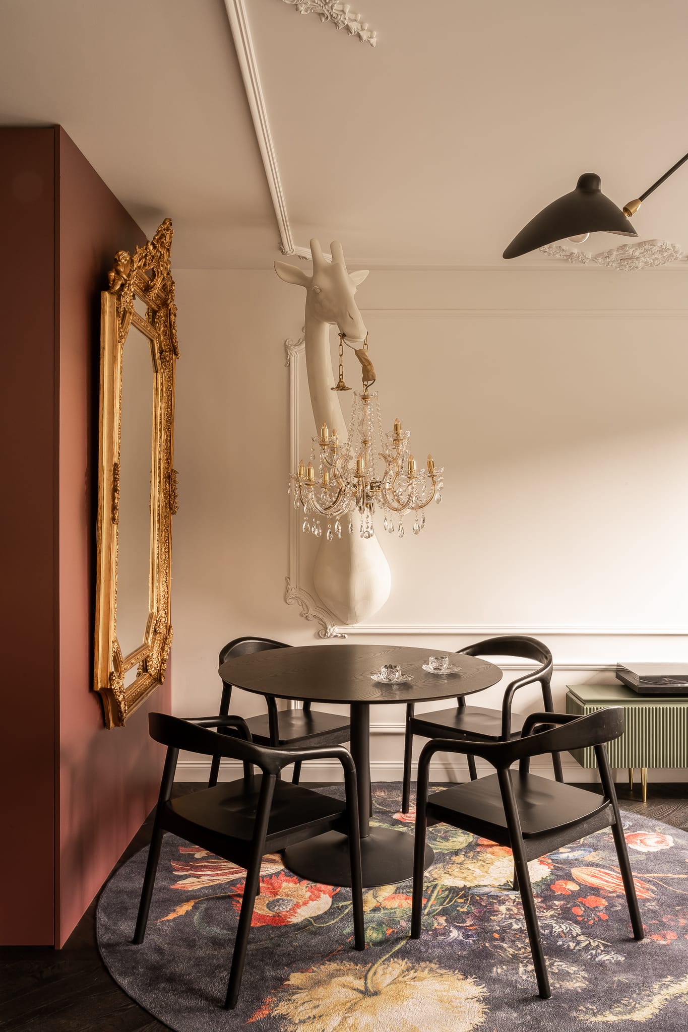 Jednym z głównych założeń stało się zachowanie proporcji między funkcją a dekoracyjnością. Największa trudność? – Praca z tak dużą ilością detali – od sztukaterii projektowanej na zamówienie, przez dobór odpowiednich materiałów, koorodynacja wykonawców i artystów przy tworzeniu wnętrza, po dopasowanie schodów kamienia Ice Jade. Wszystko musiało być spójne, ale jednocześnie zachować indywidualny charakter – mówi Miller.