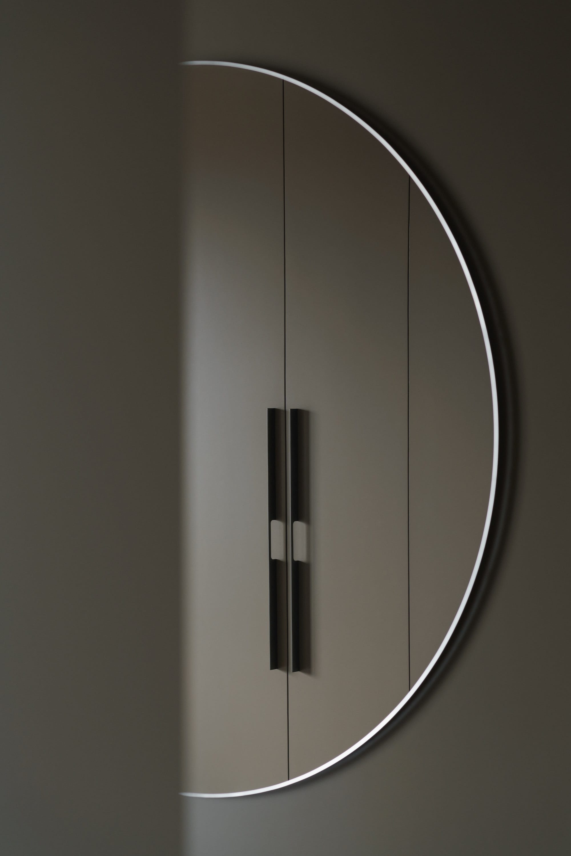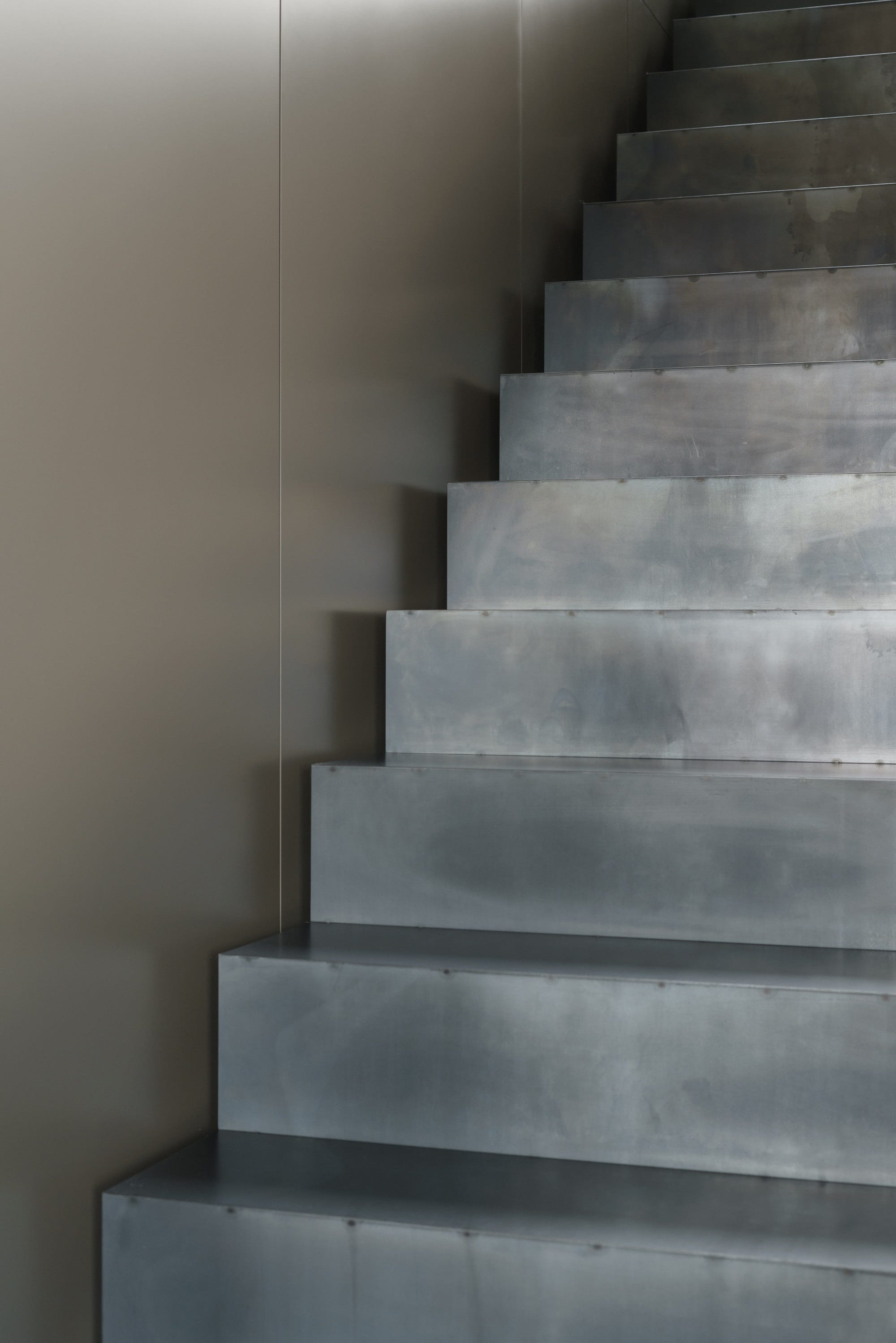 Silnym fundamentem marki jest uczciwość w kwestii materiałów. Jeśli drewno i metal, to koniecznie w wydaniu surowym, naturalnym. I tak schody z ciemnej blachy w apartamencie przy Iwickiej to prawdziwy rzemieślniczy majstersztyk – idealnie wymierzone, odsunięte od ściany enigmatyczną szczeliną, budzą zachwyt odwiedzających to mieszkanie architektów oraz pytania o technologię wykonania. Dodatkowo stal rymuje się z nogą kuchennego stołu, a obserwacja relacji między bryłami, kolorami i światłem to prawdopodobnie jedna z największych przyjemności, jakie czekają na nas w tym niezwykłym wnętrzu. Wszystkie te niuanse i subtelności są prawdopodobnie niezauważalne na pierwszy rzut oka. Za dużo tu innych ciekawych komunikatów – wzrok przyciągają formy i faktury mebli oraz wyposażenia. Subtelna prostota to jednak coś, co jest nieodłączne w pracy projektowej Adama Pulwickiego.