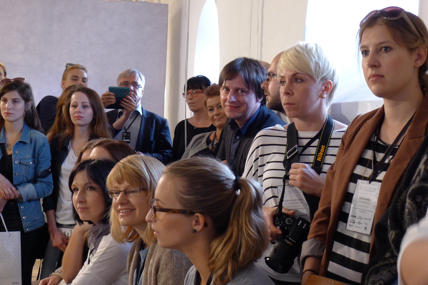 Fashion Week Models for Alexander McQueen's Spring 2010 show walk a runway with a video screen backdrop projecting a live feed of the show in progress as well as broadcasting on the internet. McQueen's collection was an interpretation of what people would look like if humans had evolved from sea creatures.