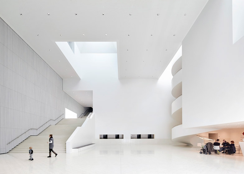 Group of young co-workers smiling while discussing ideas with each other in modern office. Business people using laptop computer. Two young woman and dark-haired man having fun while working on a new project. Horizontal, cozy workplace
