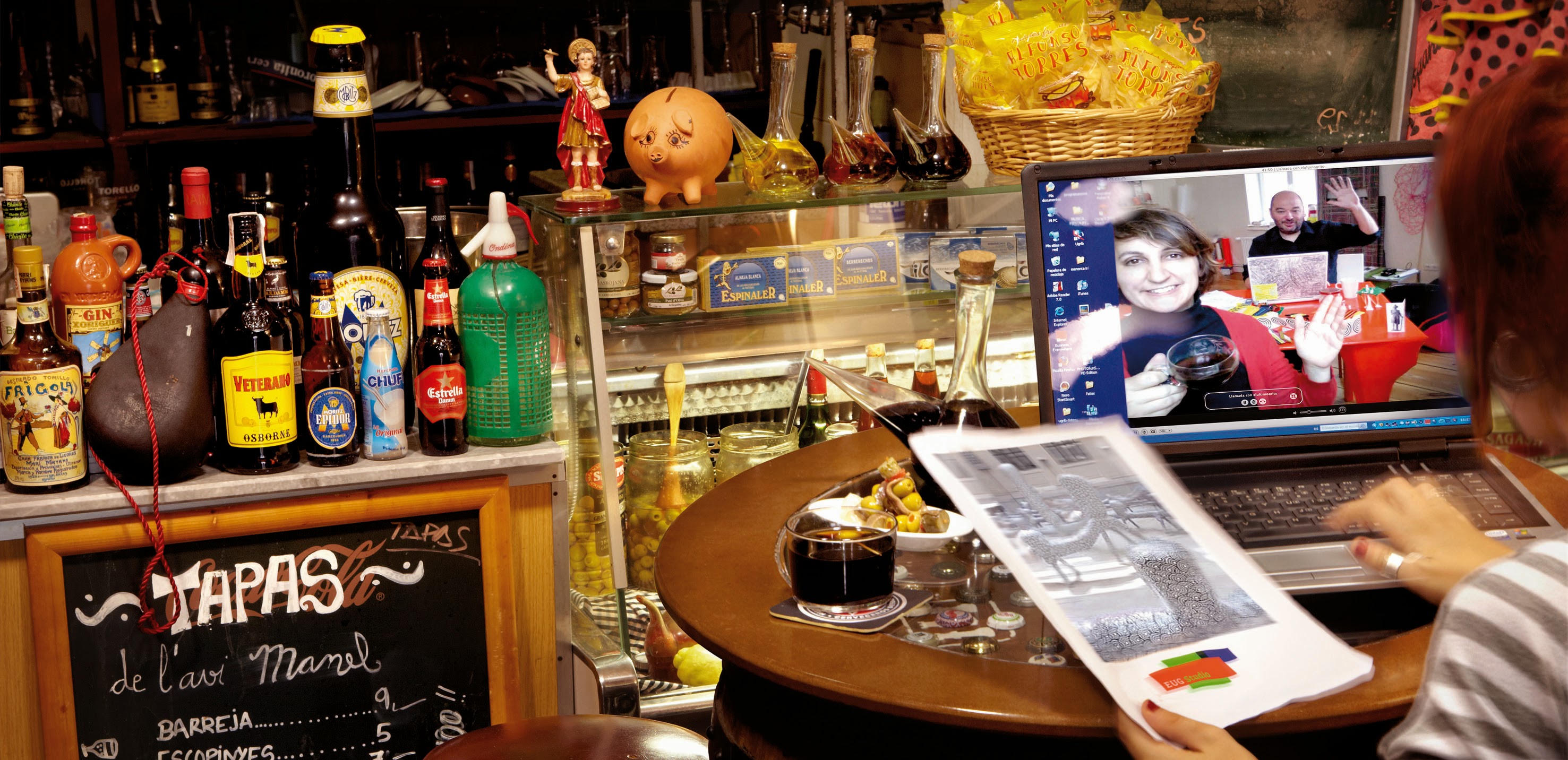 Group of young co-workers smiling while discussing ideas with each other in modern office. Business people using laptop computer. Two young woman and dark-haired man having fun while working on a new project. Horizontal, cozy workplace
