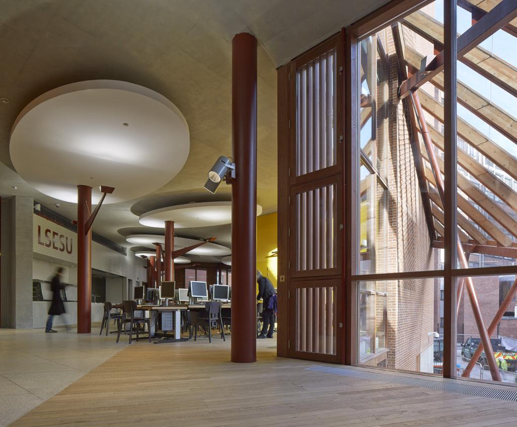 Group of young co-workers smiling while discussing ideas with each other in modern office. Business people using laptop computer. Two young woman and dark-haired man having fun while working on a new project. Horizontal, cozy workplace