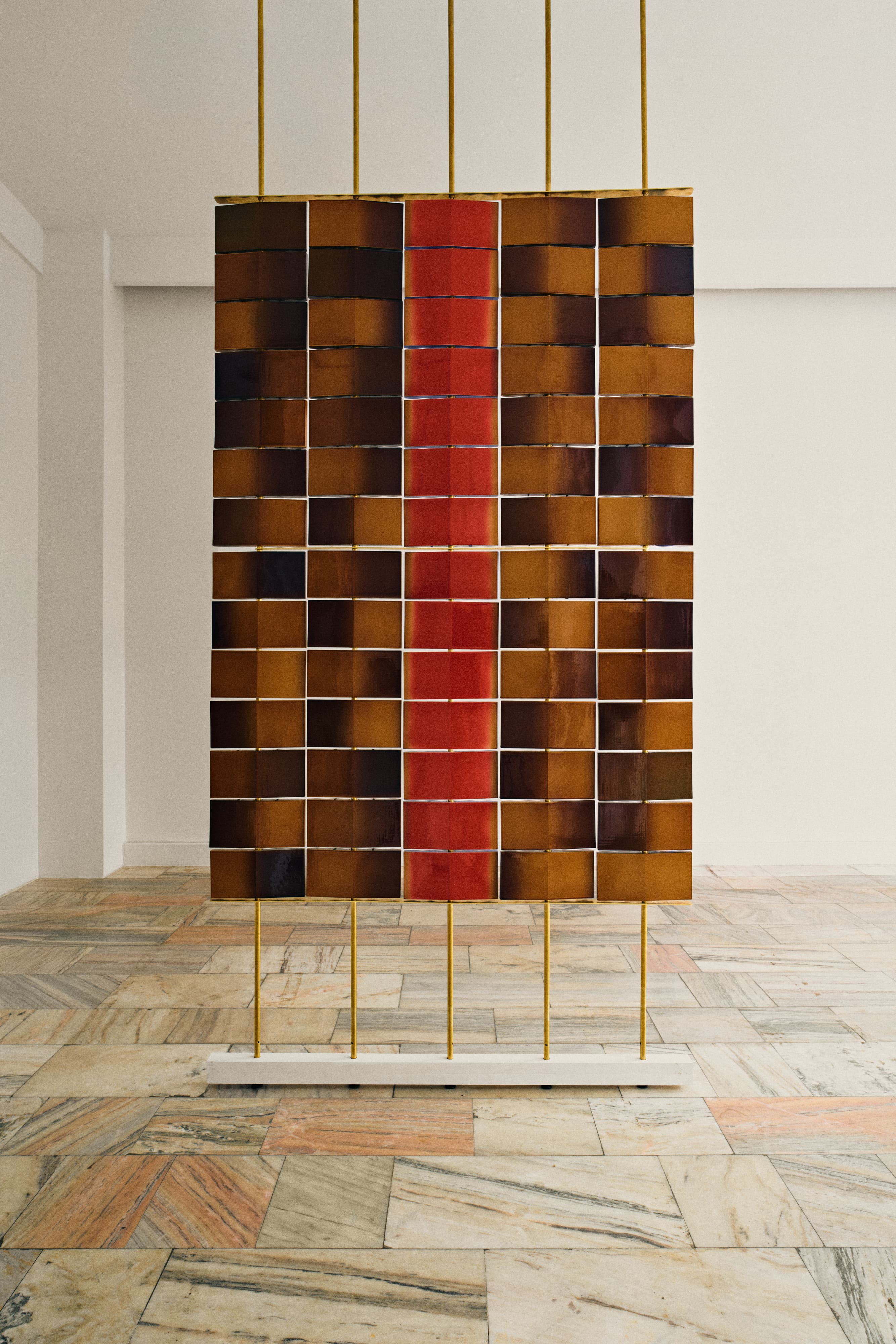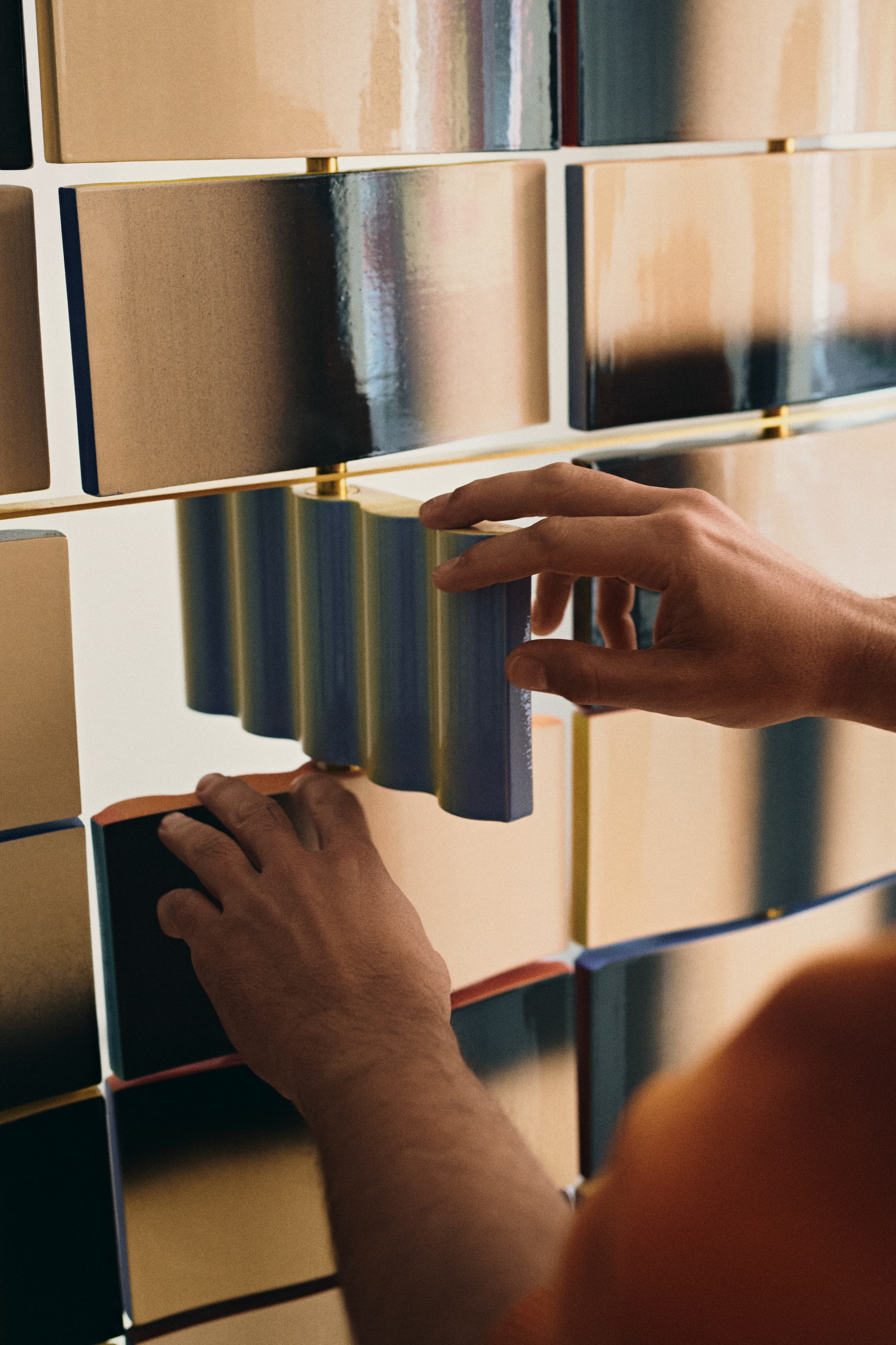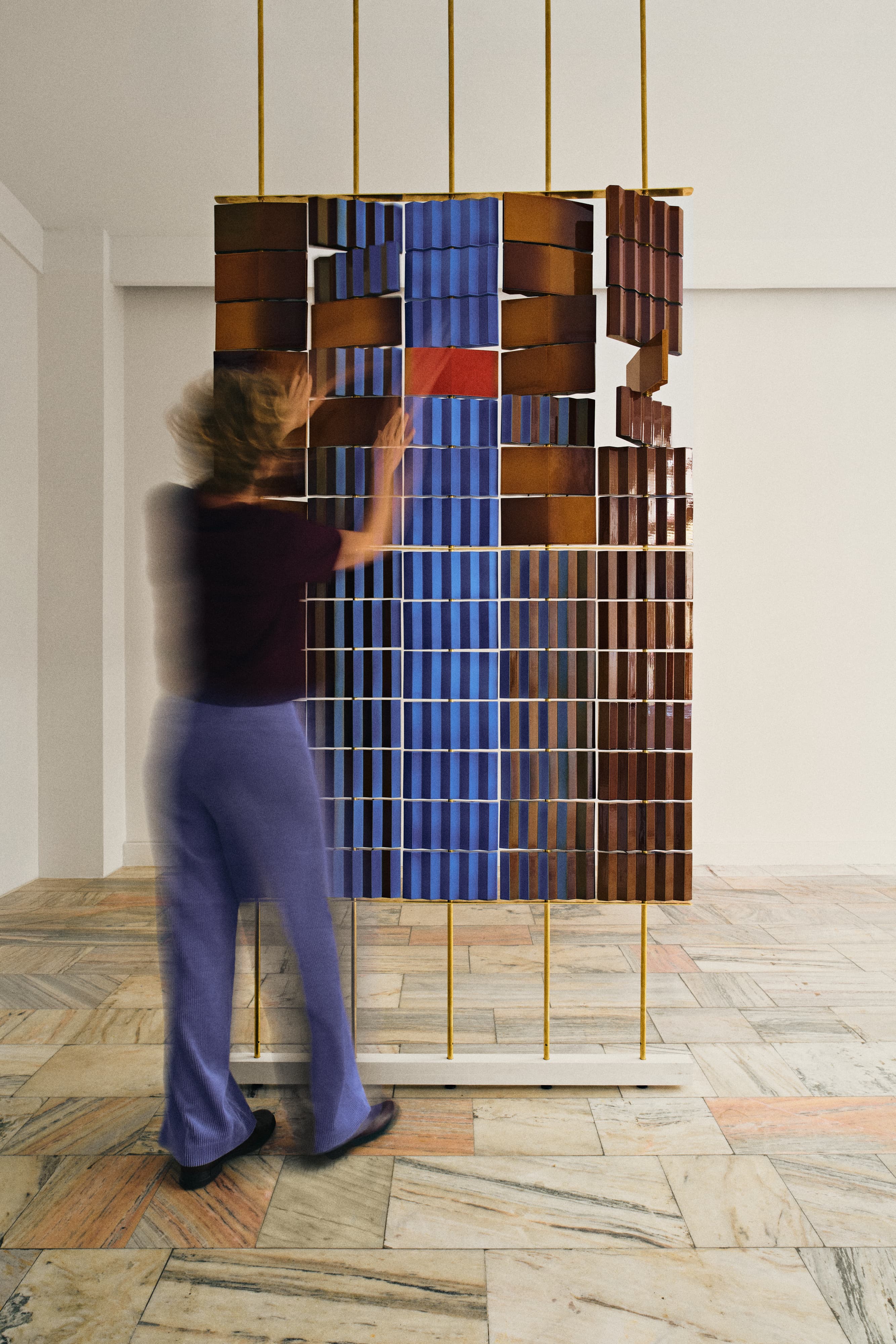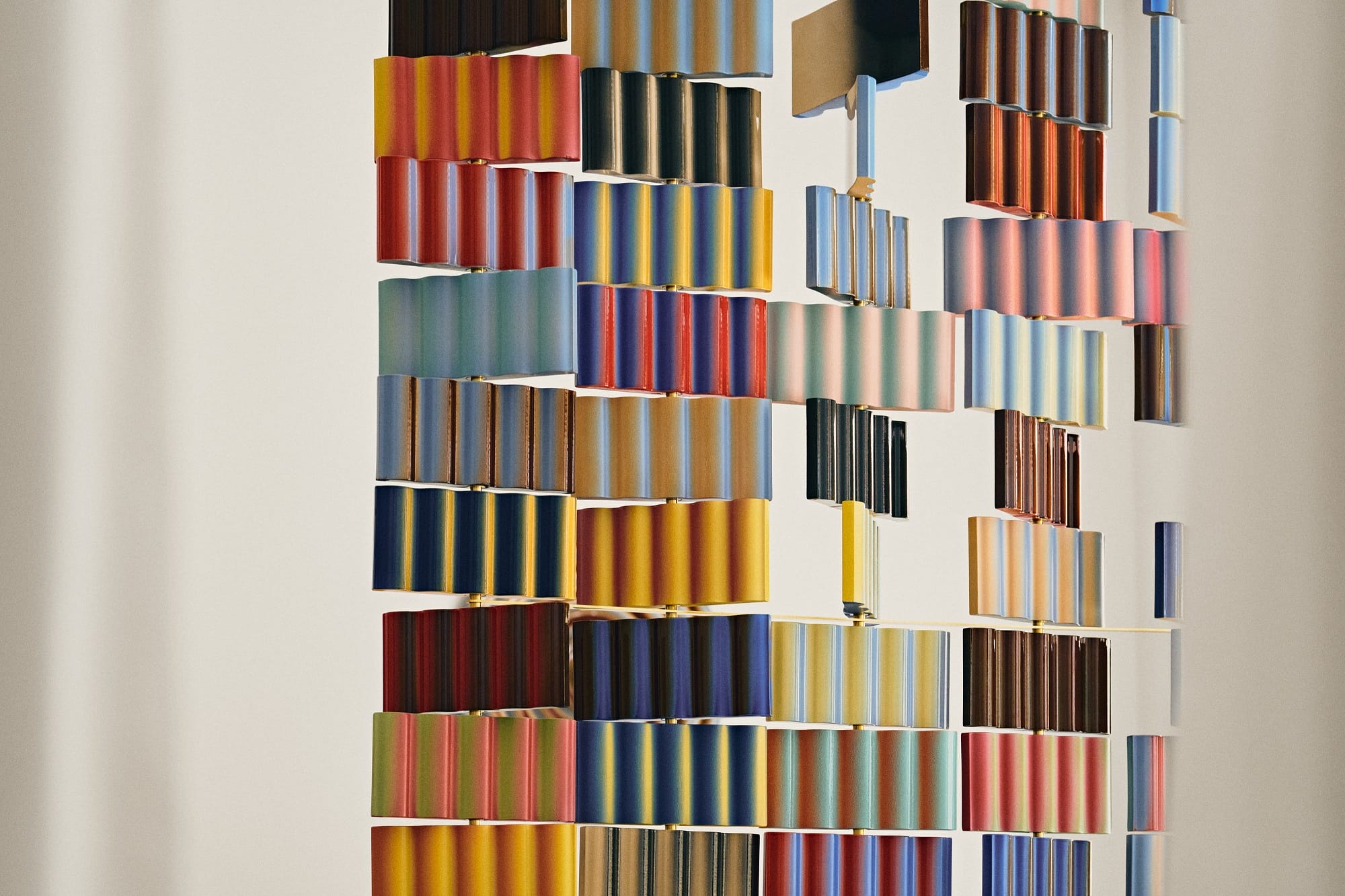 Ściana złożona z 70 ceramicznych płytek, która potrafi zmieniać swój układ niemal w nieskończoność, to centralny punkt ekspozycji „OP objects – doświadczenia z widzenia”, którą Pani Jurek prezentowała jesienią ubiegłego roku w poznańskiej pracowni Vzory.