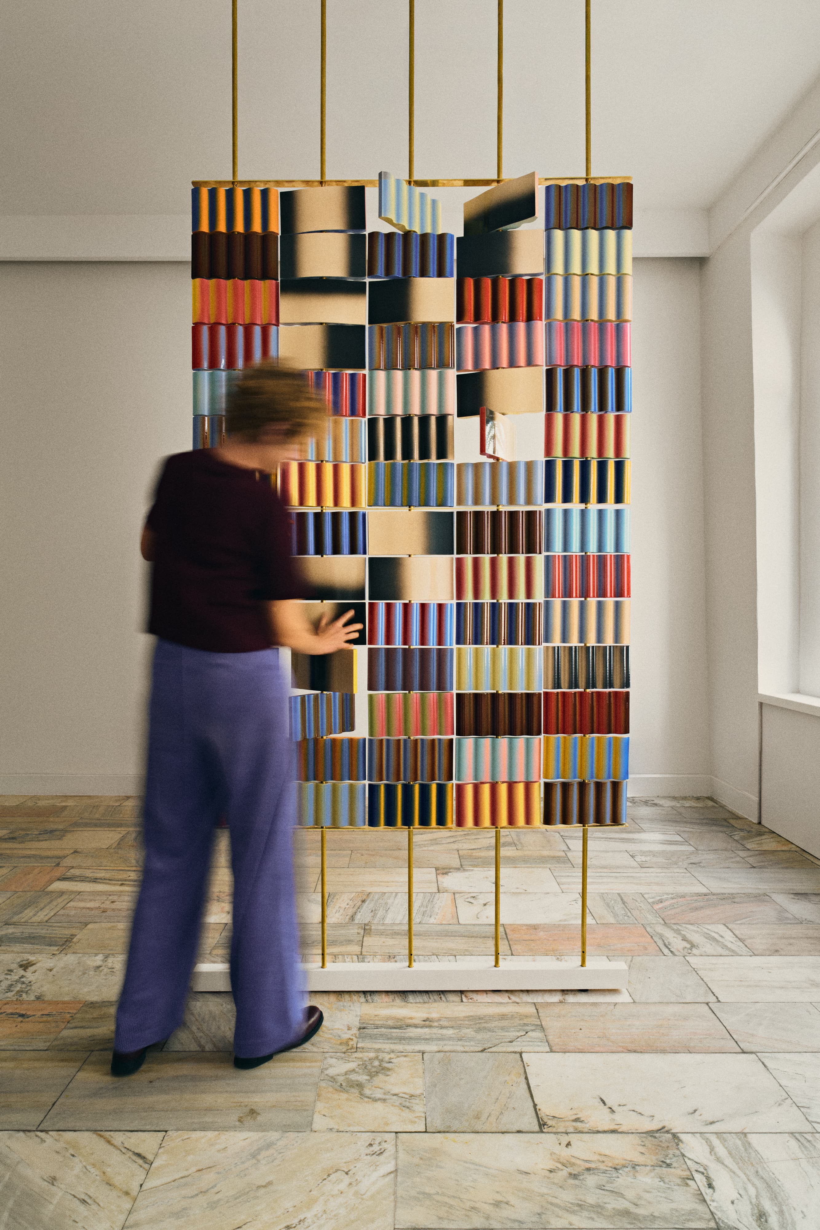 Awers i rewers to dwa oddzielne obrazy, które pod wpływem dotyku się przenikają. Każda obrócona płytka zmienia obustronnie układ, w następstwie czego ściana składająca się z 70 płytek stwarza 1180591620717411303424 możliwości. Jest to liczba ok. 150 razy większa niż liczba wszystkich ziaren piasku na ziemi i trochę mniejsza niż liczba atomów w ludzkim ciele. Poetyka tej liczby wywołuje melancholię, która wynika z niemożności sprawdzenia wszystkich konfiguracji. W tej sytuacji obsesja twórczej kontroli znika, zastąpiona przez przyjemność testowania nieskończonych kombinacji wraz z uczestnikami doświadczenia.
