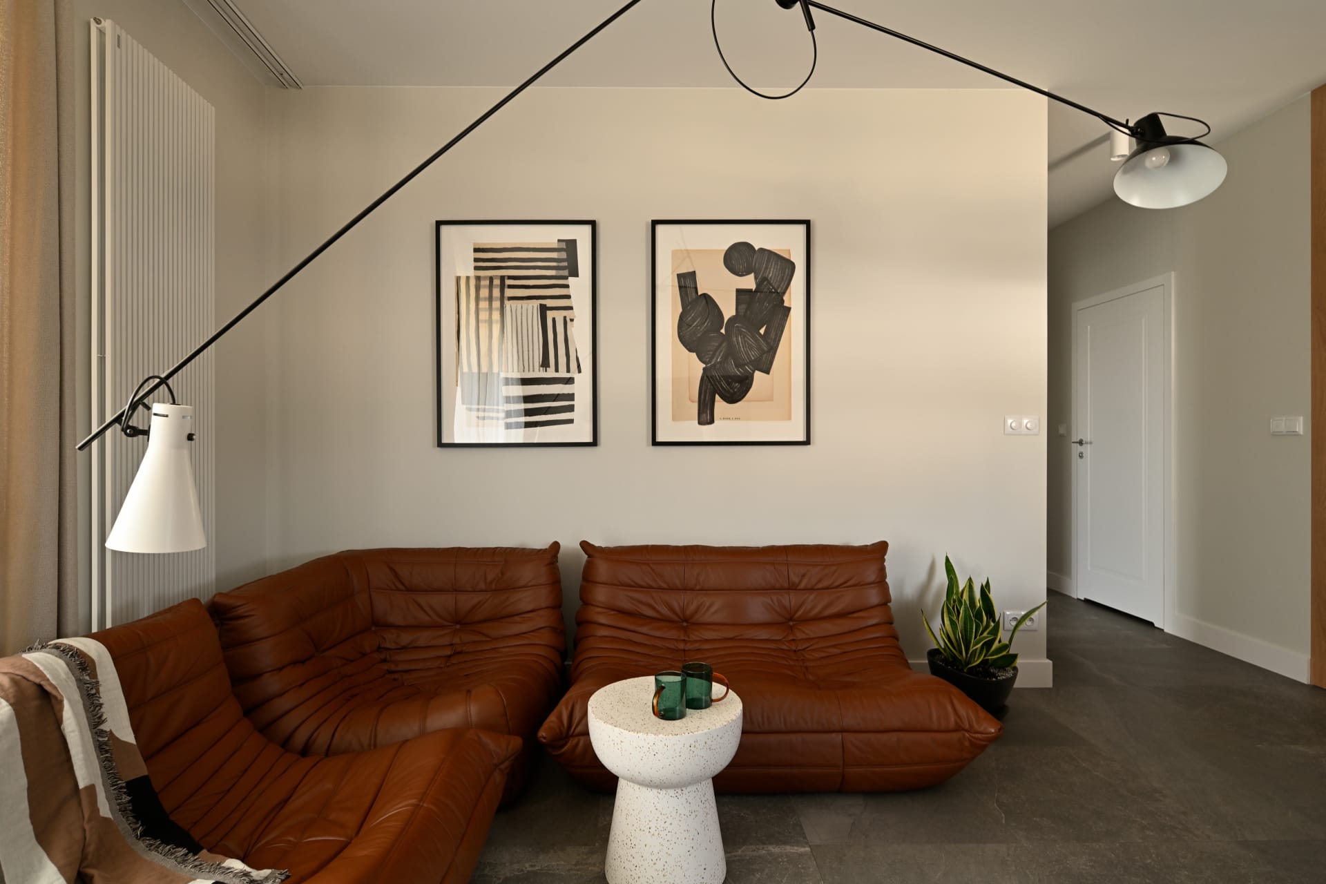 Właściciele tego 83-metrowego mieszkania na warszawskiej Woli mieli dwa pewniki: orzechową komodę marki Tamo, którą zabrali z poprzedniego lokum, oraz wymarzony zestaw sof Togo. Wokół tych elementów architektka Marta Czeczko-Skruczaj zbudowała aranżację, której motyw przewodni można określić jako „oda do spokoju”.