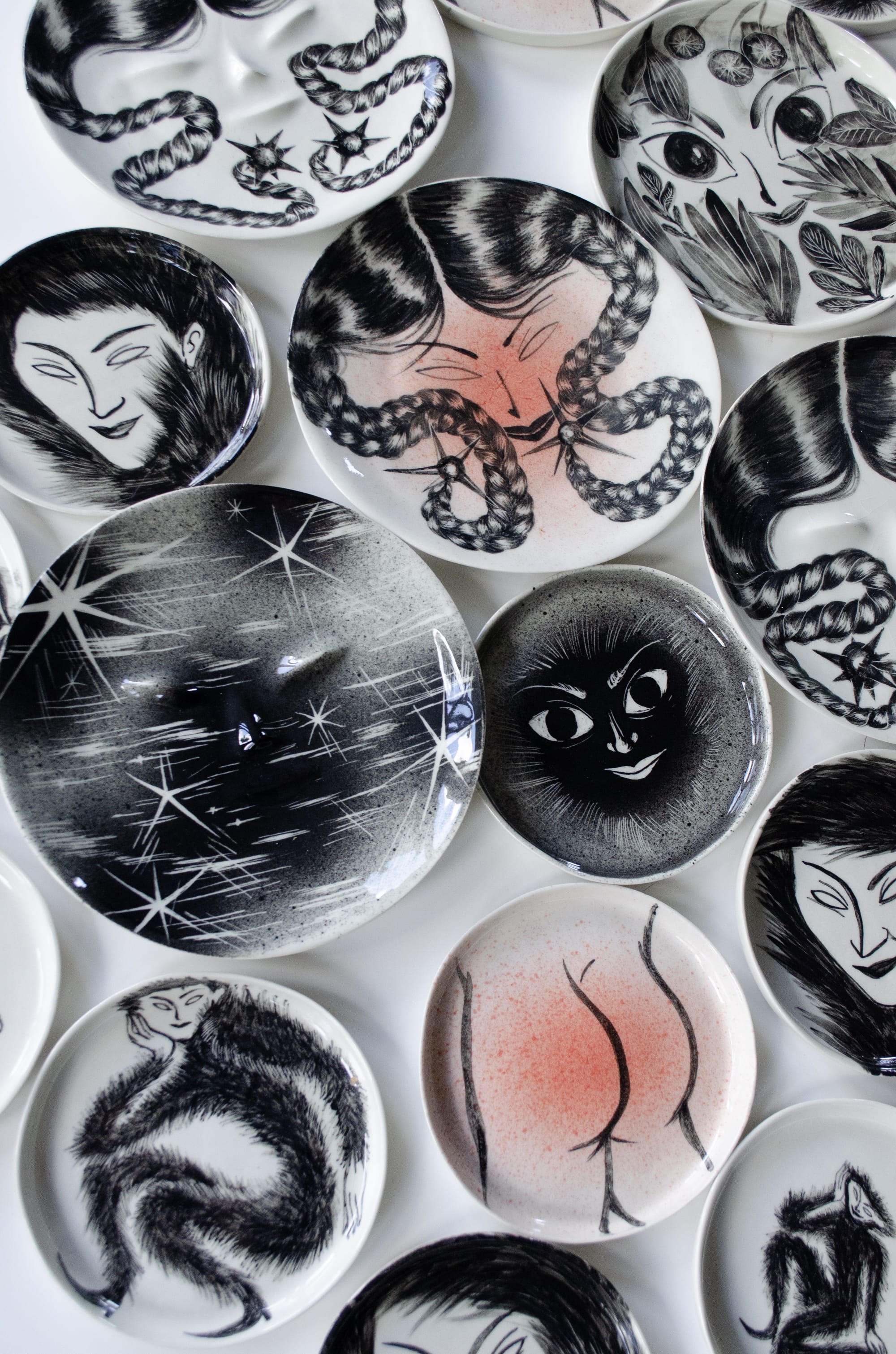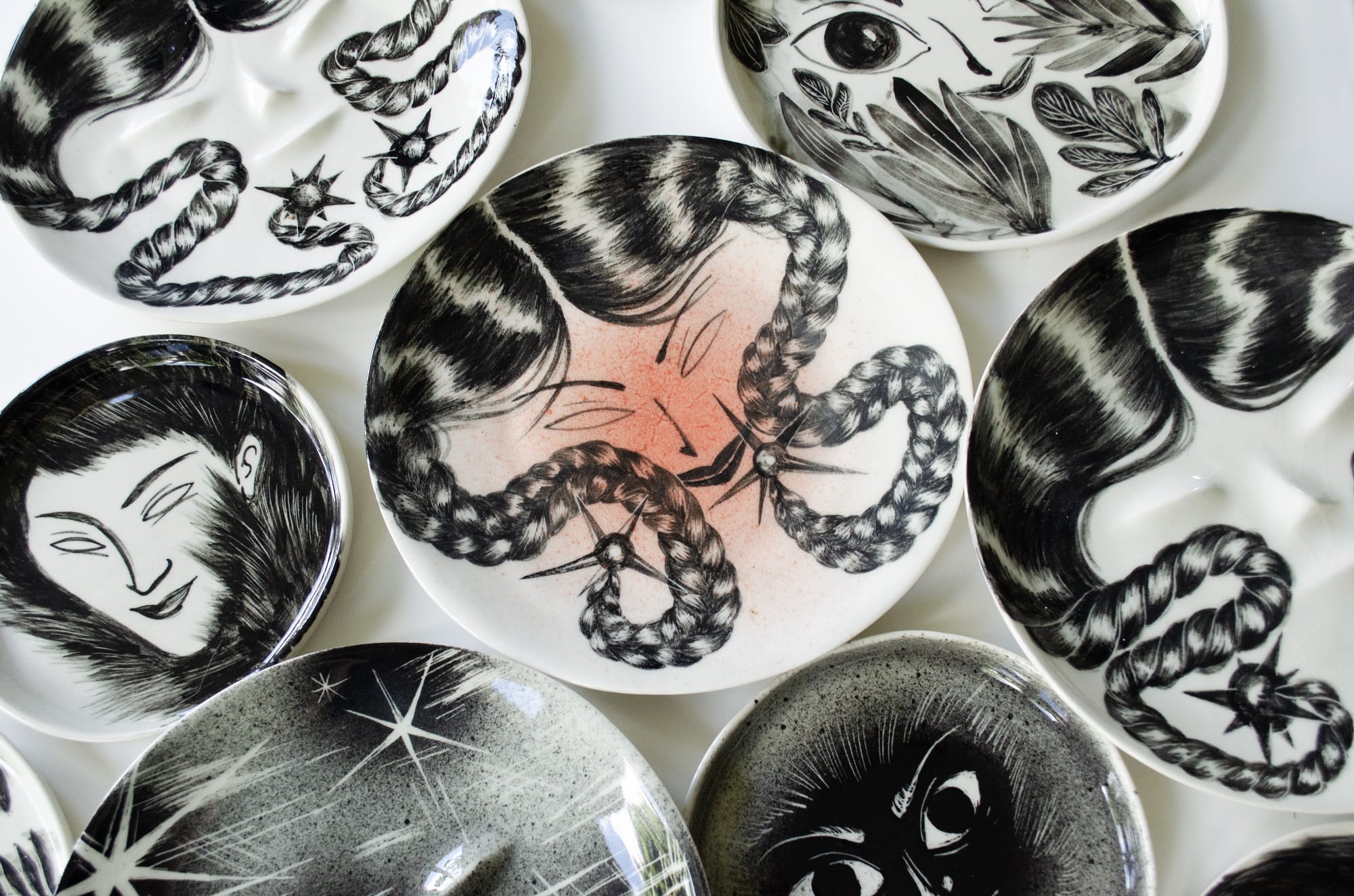 Dekoracje są precyzyjne, czasochłonne. Technika natrysku wybieranego nawiązuje do dawnych wzorów, jak choćby z Chodzieży. To świadome odniesienie, poprzez które artysta oddaje szacunek estetyce lat 60. XX wieku. Na talerzach i wazonach pojawiają się na nich motywy charakterystyczne dla jego twórczości, niektóre jeszcze z czasów studiów na krakowskiej ASP – włosy, warkocze, twarze, Gwiazda Poranna. Z niektórych dodatkowo wyłania się wypukła twarz – po raz pierwszy pojawiła się przy okazji projektu, który artysta realizował w Łysej Górze, podczas pleneru w Spółdzielni Pracy Przemysłu Ludowego i Artystycznego Kamionka, założonej w 1947 roku. Odtwarzał tam z oryginalnych form gipsowych patery, z lokalnej gliny i szkliw z lat 60. – projekt powstał dzięki współpracy z Krzysztofem Sachą, ostatnim kierownikiem artystycznym Spółdzielni. Twarze na obiektach symbolizowały ducha tego miejsca, a od tamtej pory pojawiają się też na rysunkach i obrazach.