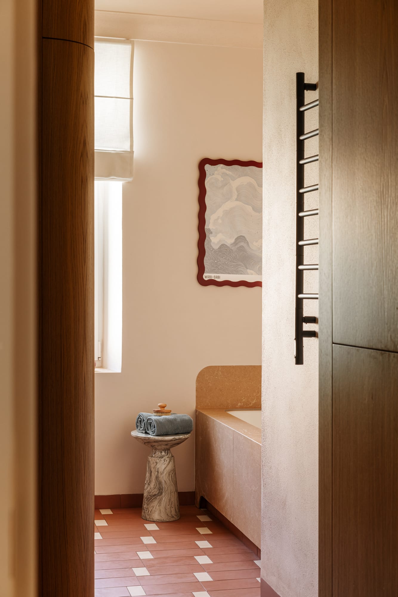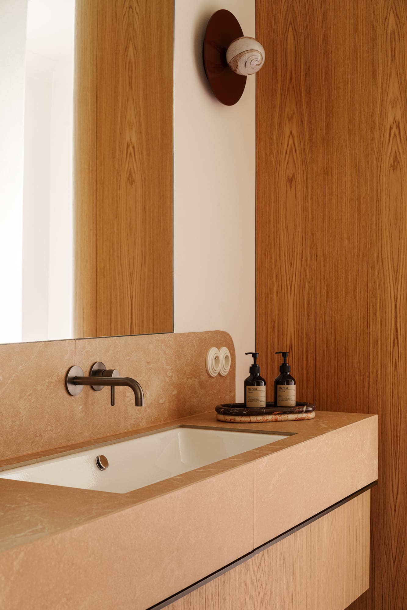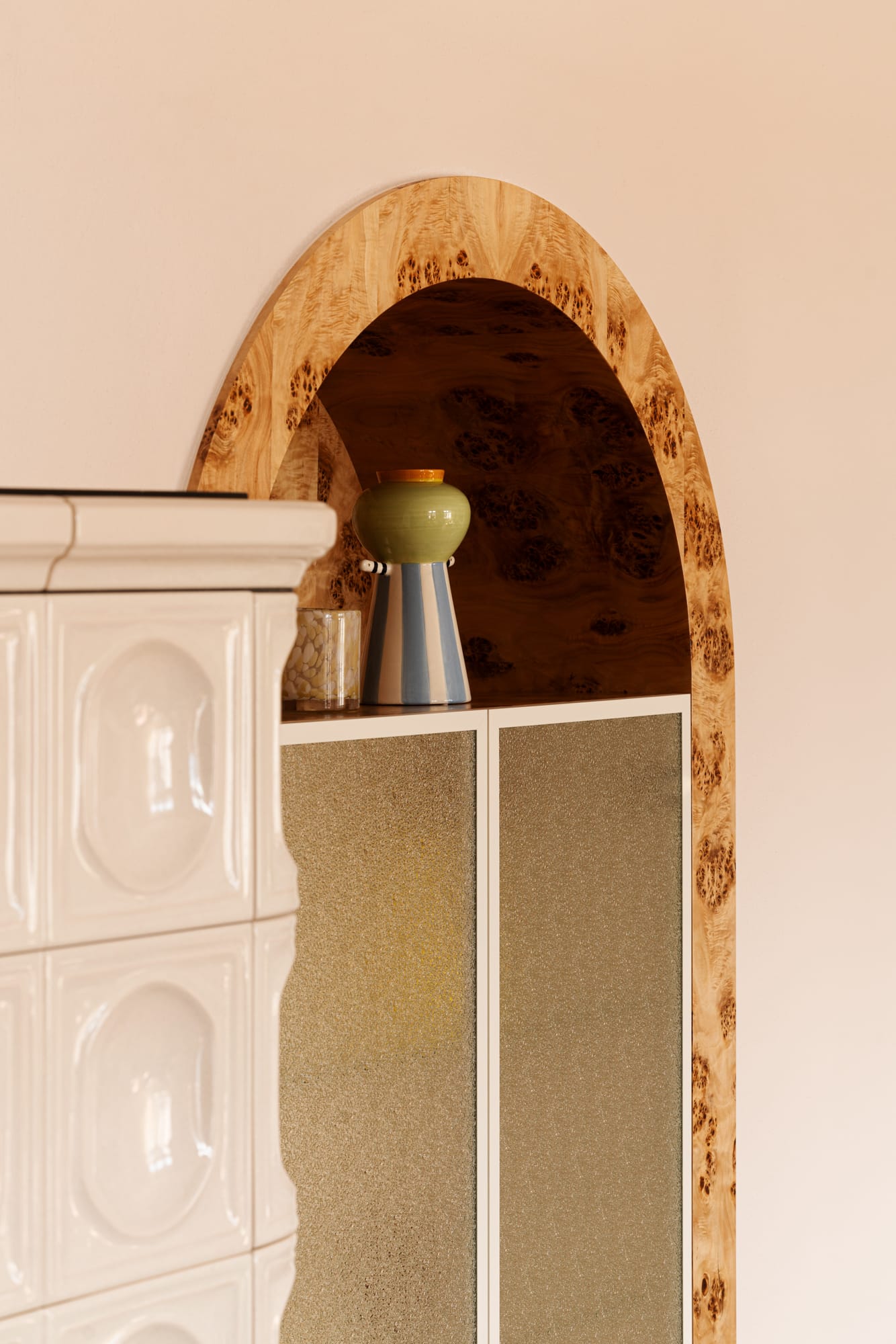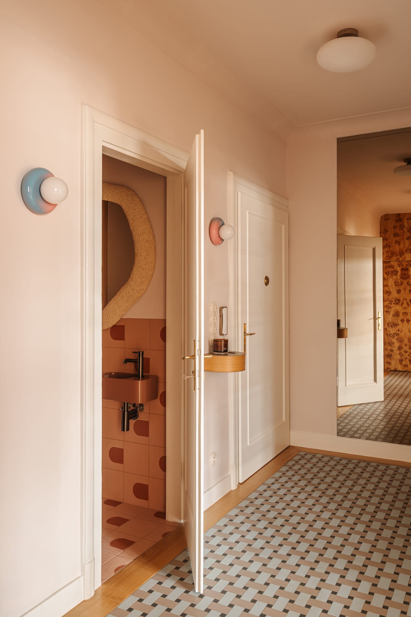 Mieszkanie znajduje się w modernistycznej kamienicy z nurtu czeskiego funkcjonalizmu. Już na wstępie uwagę architektów z pracowni Razoo przyciągnęło wyjątkowe światło oraz zachowane detale architektoniczne: subtelne gzymsy, oryginalna stolarka okienna i drzwiowa, a także drewniany parkiet. – Od początku wiedzieliśmy, że te elementy powinny pozostać integralną częścią projektu – nie tylko zachowane, ale wręcz podkreślone – mówią architekci. Równie ważne było stworzenie komfortowego miejsca do życia, odpowiadającego współczesnym potrzebom mieszkańców.