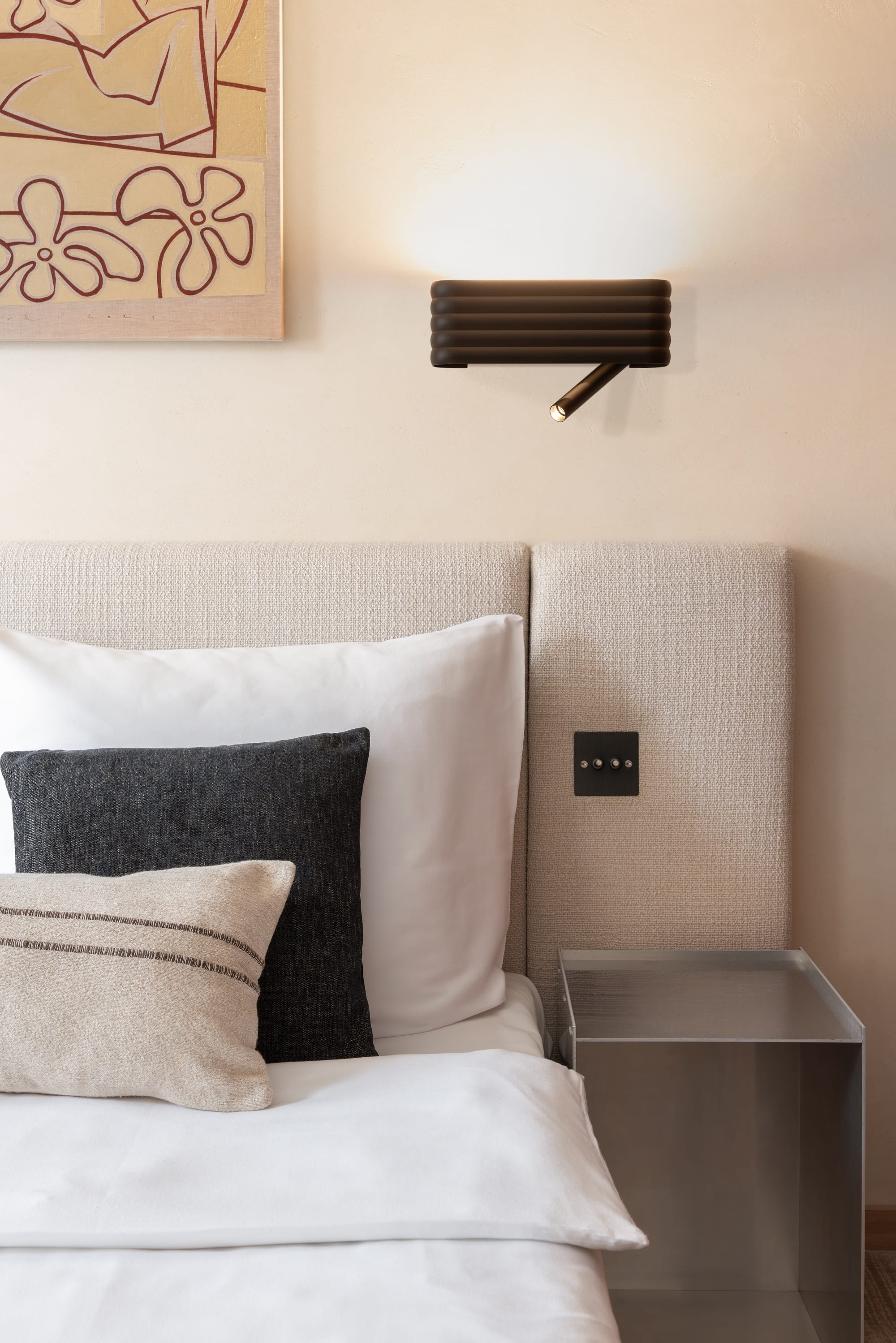 RIBBY round up&down to kompaktowa oprawa zwieszana, dobrze sprawdzająca się nad stolikami, w mniejszych mieszkaniach, kawiarniach i restauracjach. RIBBY line points łączy dekoracyjny charakter z jeszcze większą funkcjonalnością, oferując światło zadaniowe skierowane w dół oraz uplight, a dzięki dwóm niezależnym obwodom pozwala tworzyć trzy scenariusze świecenia. Z kolei RIBBY wall up&task to kinkiet, który łączy oświetlenie ogólne z precyzyjnym światłem do czytania, dlatego szczególnie dobrze odnajduje się w sypialniach, pokojach hotelowych i strefach relaksu.