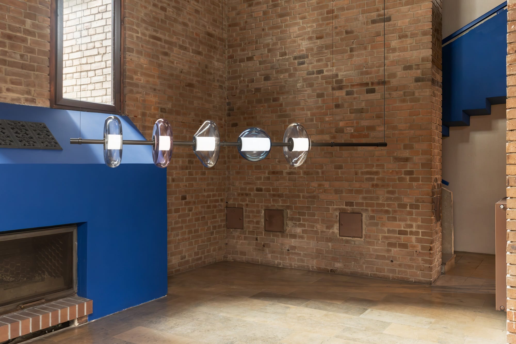 Kompozycja BUCLO chain z pierścieniami LED w przestronnym wnętrzu – oświetlenie warstwowe AQForm 2026–2027