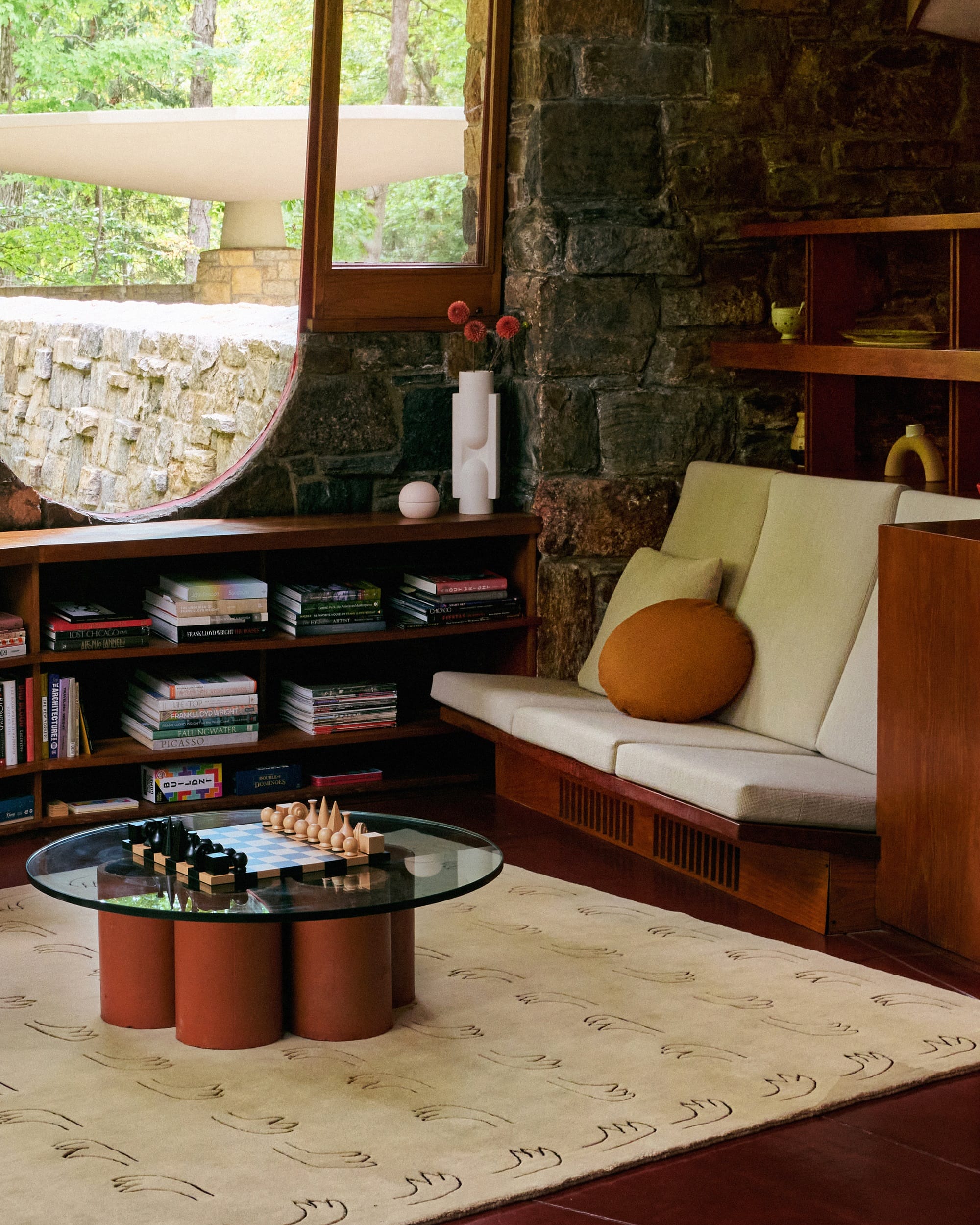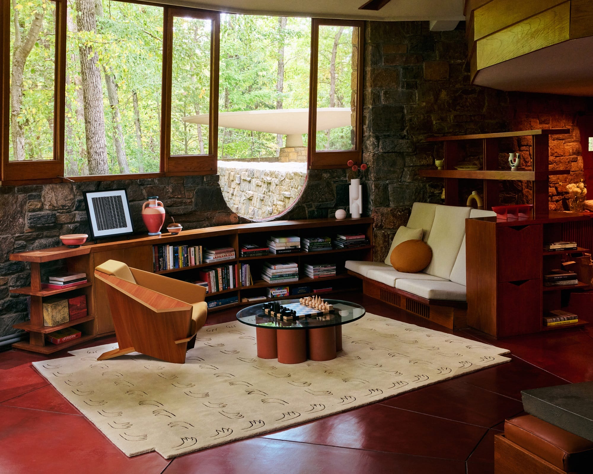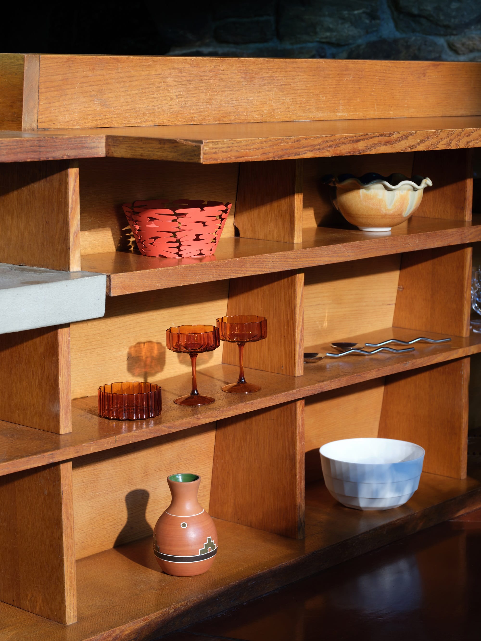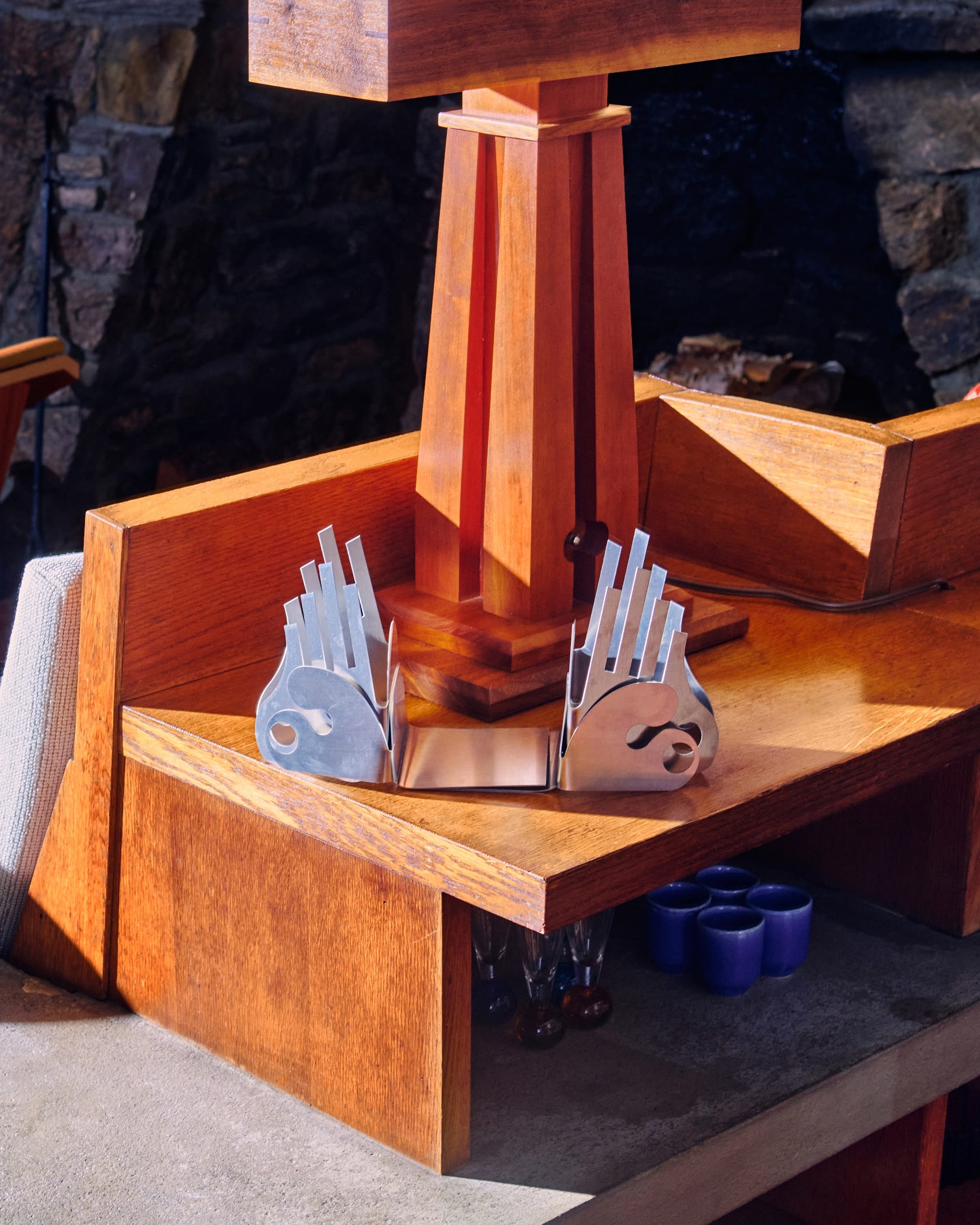 Znajdziemy tu także obiekty zaprojektowane przez Farrah Sit, Fort Standard, Faye Toogood, Sophie Lou Jacobsen i wielu innych. Większe elementy – marek Cassina, Poltrona Frau i Gohar World – uzupełniają modernistyczną estetykę oryginalnych mebli, od regałów po łóżka, z których wiele zostało zaprojektowanych specjalnie z myślą o nietypowym układzie domu. Miejsce nie jest otwarte do zwiedzania, choć co jakiś czas odwiedzają je ciekawscy miłośnicy architektury Wrighta. – Zawsze znajdzie się ktoś, znajomy znajomego z sąsiedztwa, kto chce wpaść do nas i zobaczyć, jak dom wygląda w środku – wyjaśnia Jeffrey Renz.