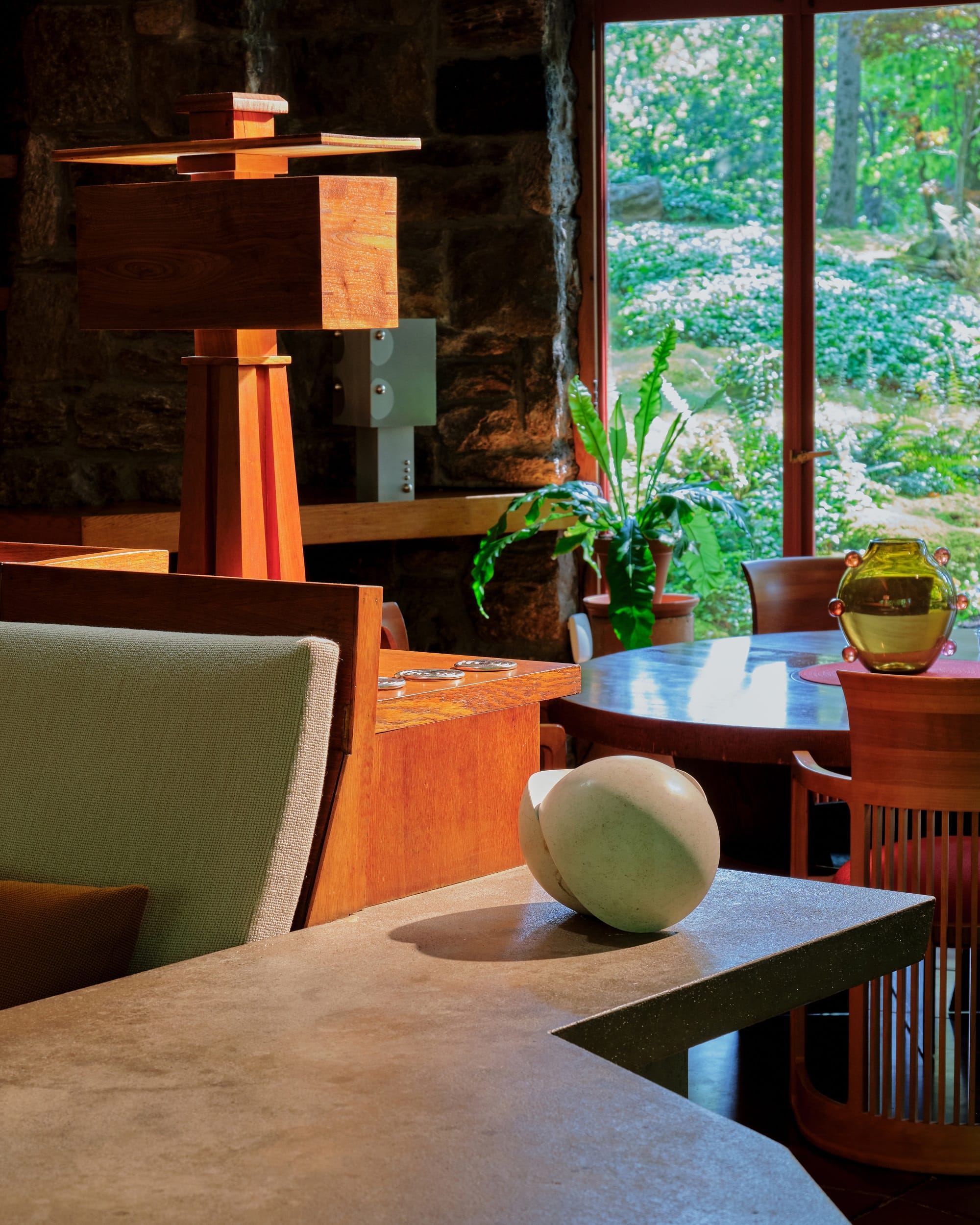 Choć Wright zaprojektował taborety i stoły, większość umeblowania stanowi drewniana zabudowa. Dom został wzniesiony głównie z miejscowego kamienia, betonu, dębu i szkła, co tworzy naturalny, organiczny klimat. Budynek zmieniał właścicieli jedynie cztery razy i pozostaje w dużej mierze niezmieniony. Jego obecnym właścicielem jest projektant Jeffrey Renz, który wykorzystał tę przestrzeń do prezentacji pierwszej kolekcji swojej marki Ready To Hang, jak również starannie wyselekcjonowanej kolekcji designu.