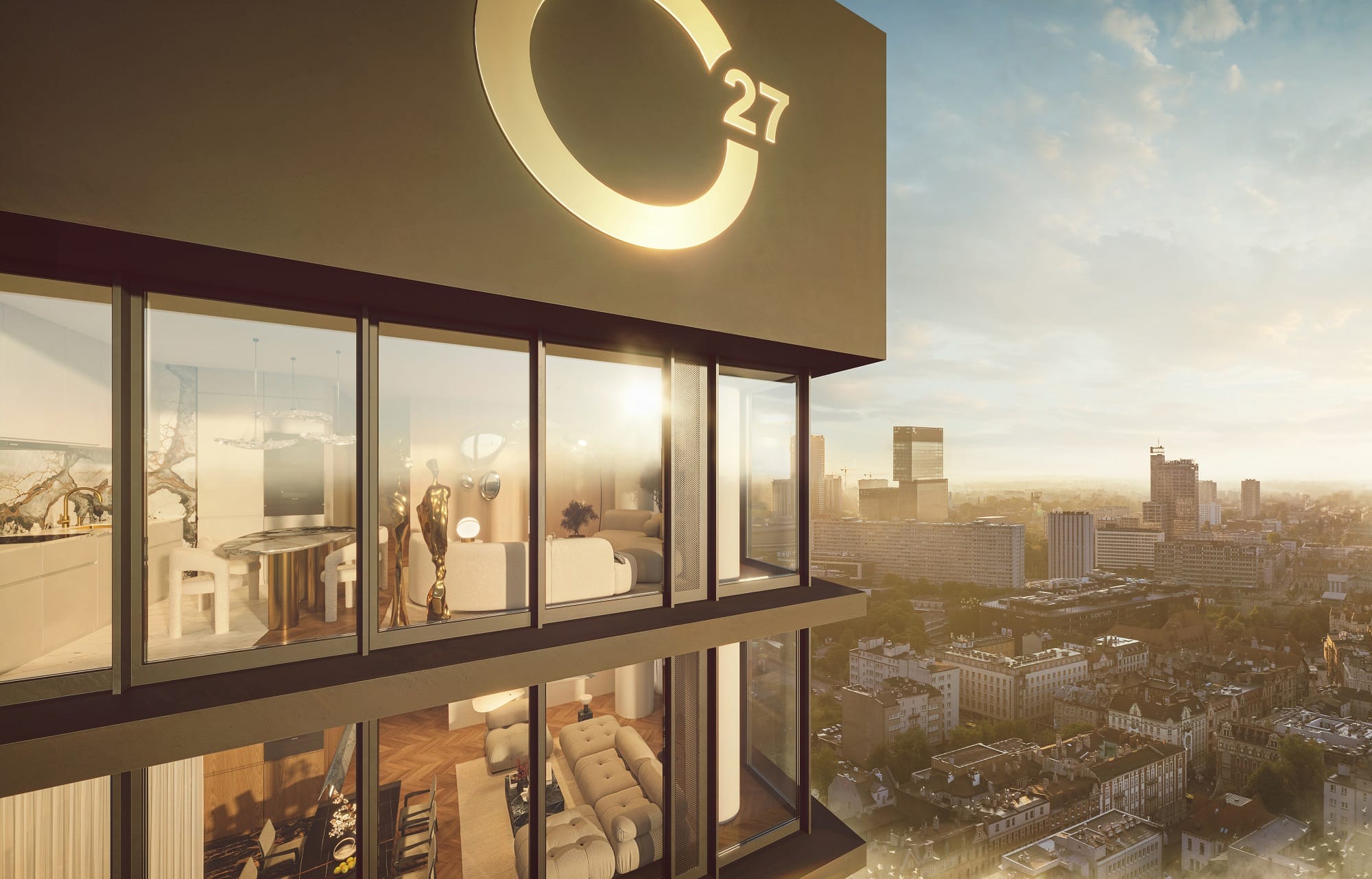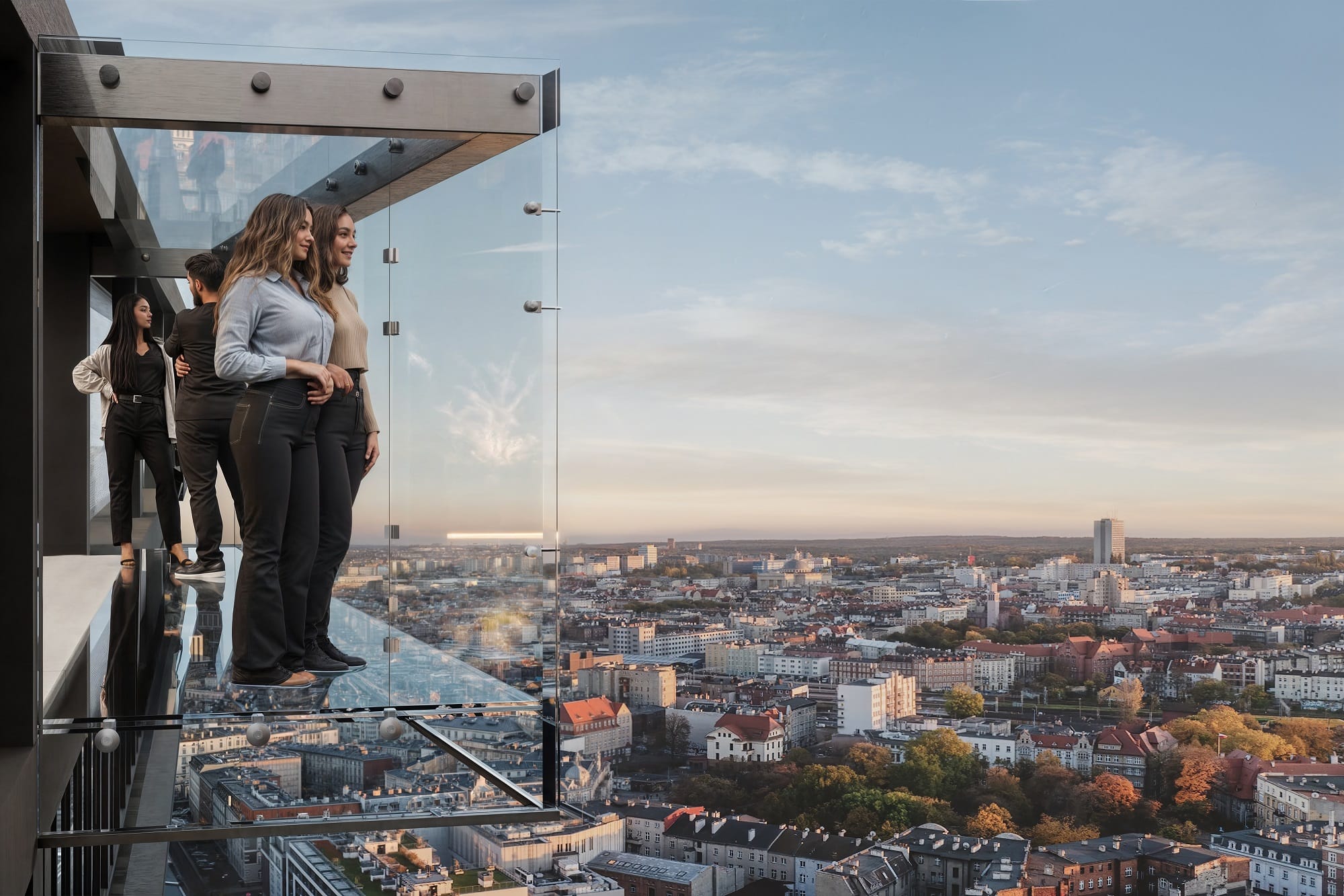 Motywem przewodnim inwestycji jest transparentność. I to dosłownie – do 16. piętra mieszkańcy mają do dyspozycji loggie i tarasy, natomiast powyżej tej granicy apartamenty są w całości przeszklone. Projekt zwieńcza Sky Lounge na 29. piętrze, gdzie Trust Investment zaplanował pierwszy w Polsce Sky Walk – przeszklony taras widokowy zapewniający bezkonkurencyjne widoki na miasto, ale także kino letnie z modułowymi kanapami i strefę BBQ.