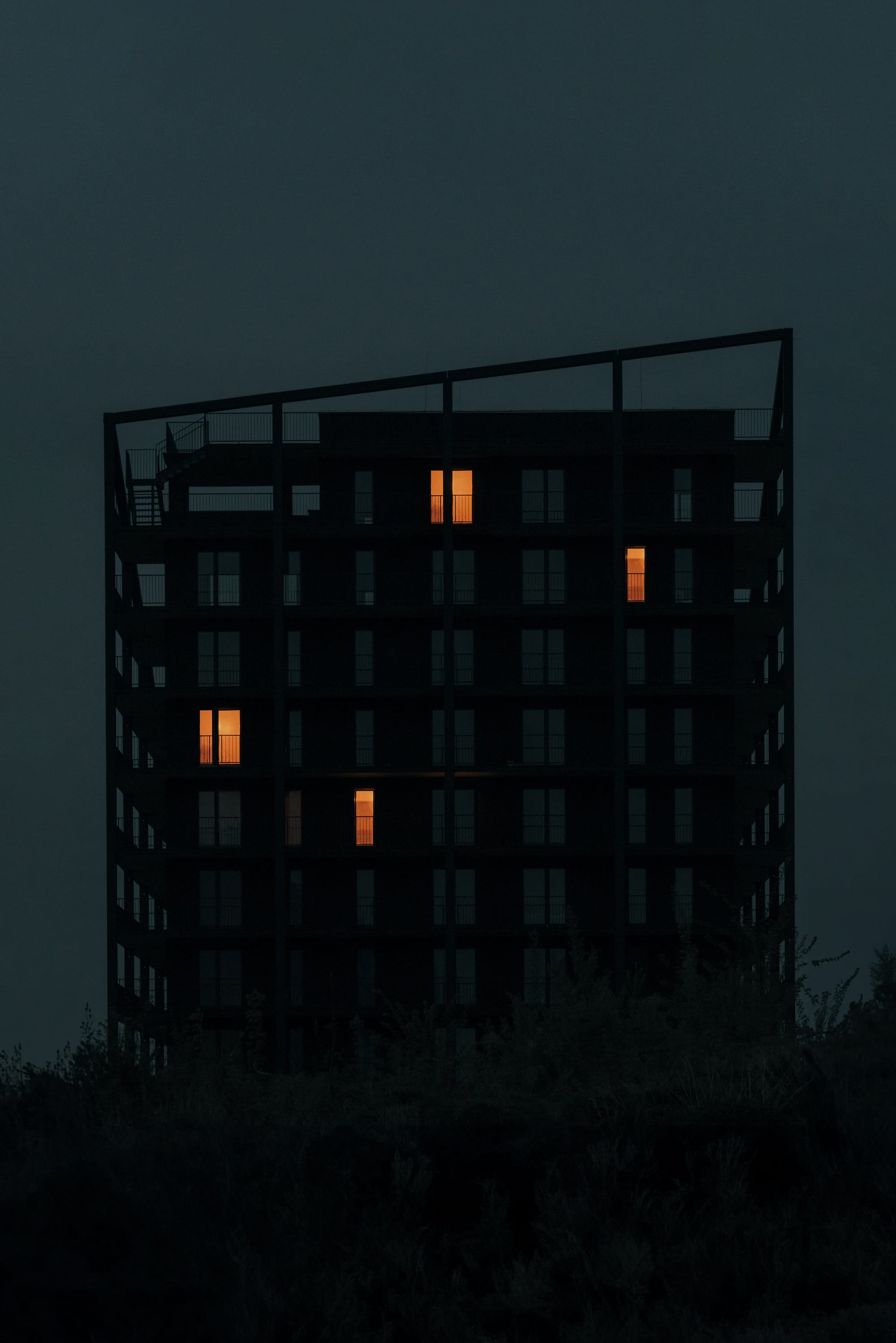Latem słońce dociera do powierzchni fasady tylko rano i wieczorem, co ogranicza przegrzewanie wnętrz, natomiast w chłodniejsze dni – przy niższym kącie padania promieni – powierzchnia elewacji gromadzi i oddaje ciepło, poprawiając komfort użytkowania tarasów.